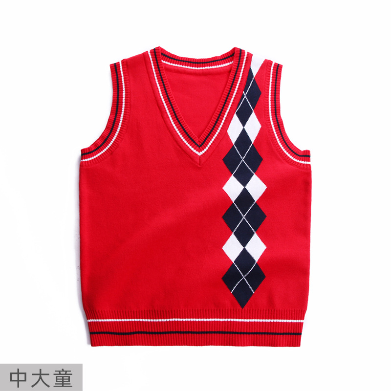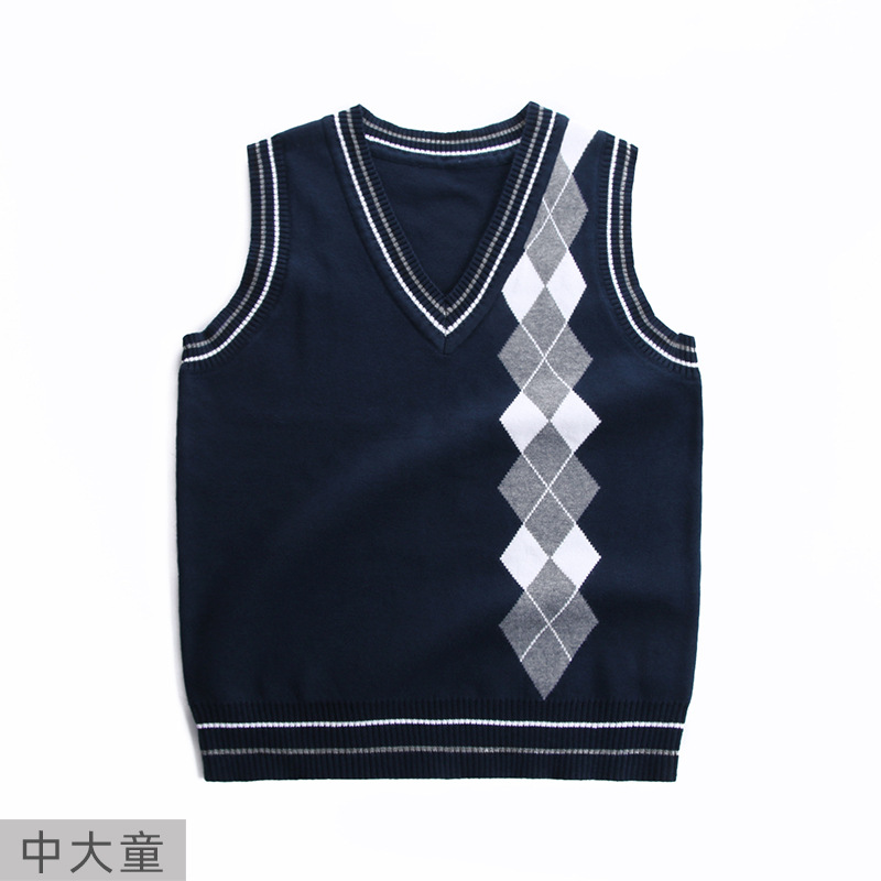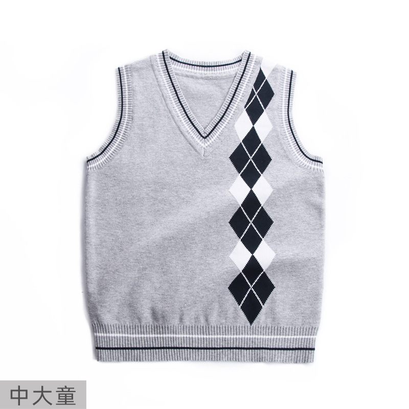 2026 봄 가을 중대형 아동용 조끼 V넥 풀오버 민소매 스트라이프 다이아몬드 패턴 조끼 중학생 조끼스토어 가기