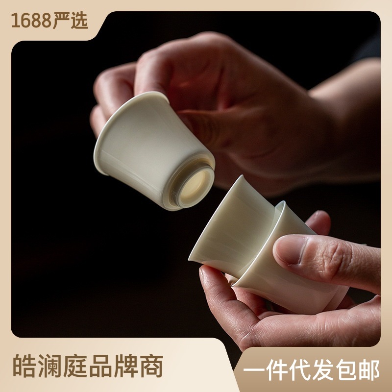 모조 노래 살구색 흰색 작은 차 컵 세라믹 마스터 컵 쿵푸 차 세트 세트 차 시음 컵 화이트 도자기 옥 도자기 단일 컵 마스터 컵