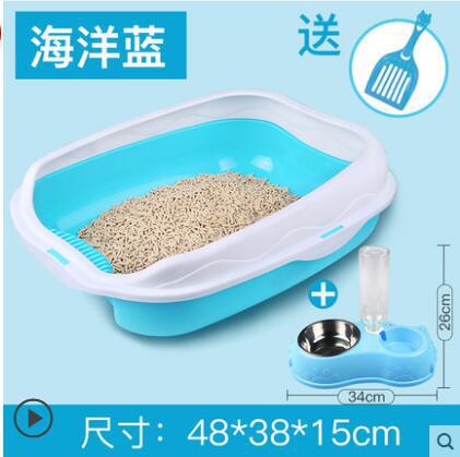 • 대형 [고양이 쓰레기통 + 고양이 밥그릇] 스카이 블루 + 컬렉션 플러스 구입 및 배송 [고양이 쓰레기 삽 + 개박하]]