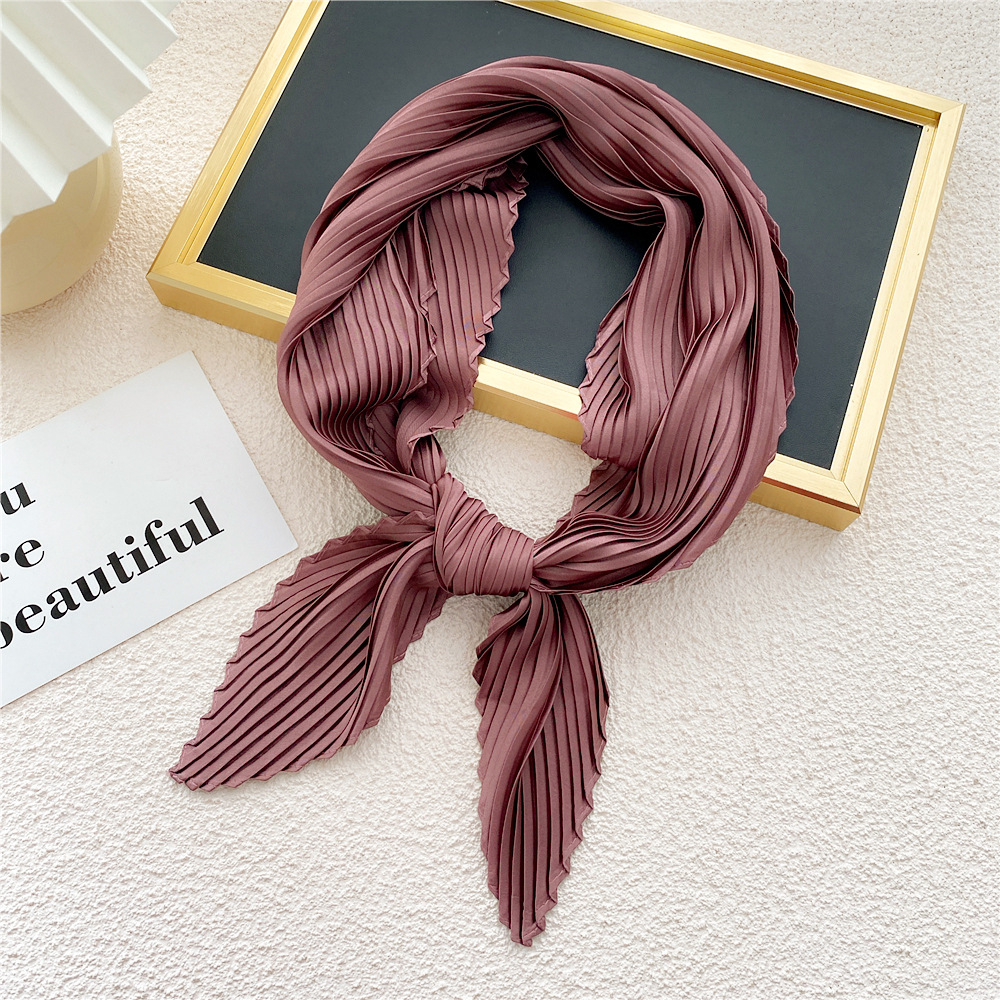 70 주름 단색 작은 사각 스카프 여성용 일반 사계절 경량 실크 스카프 전문 봄과 가을 스카프 장식 스카프