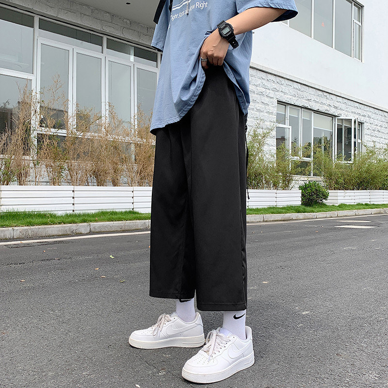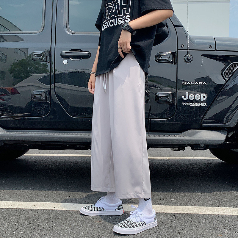와이드 레그 팬츠 남성용 여름 얇은 느슨한 스트레이트 아이스 실크 디핑 스포츠 발목 길이 팬츠 캐주얼 팬츠 홍콩 스타일 트렌디 팬츠