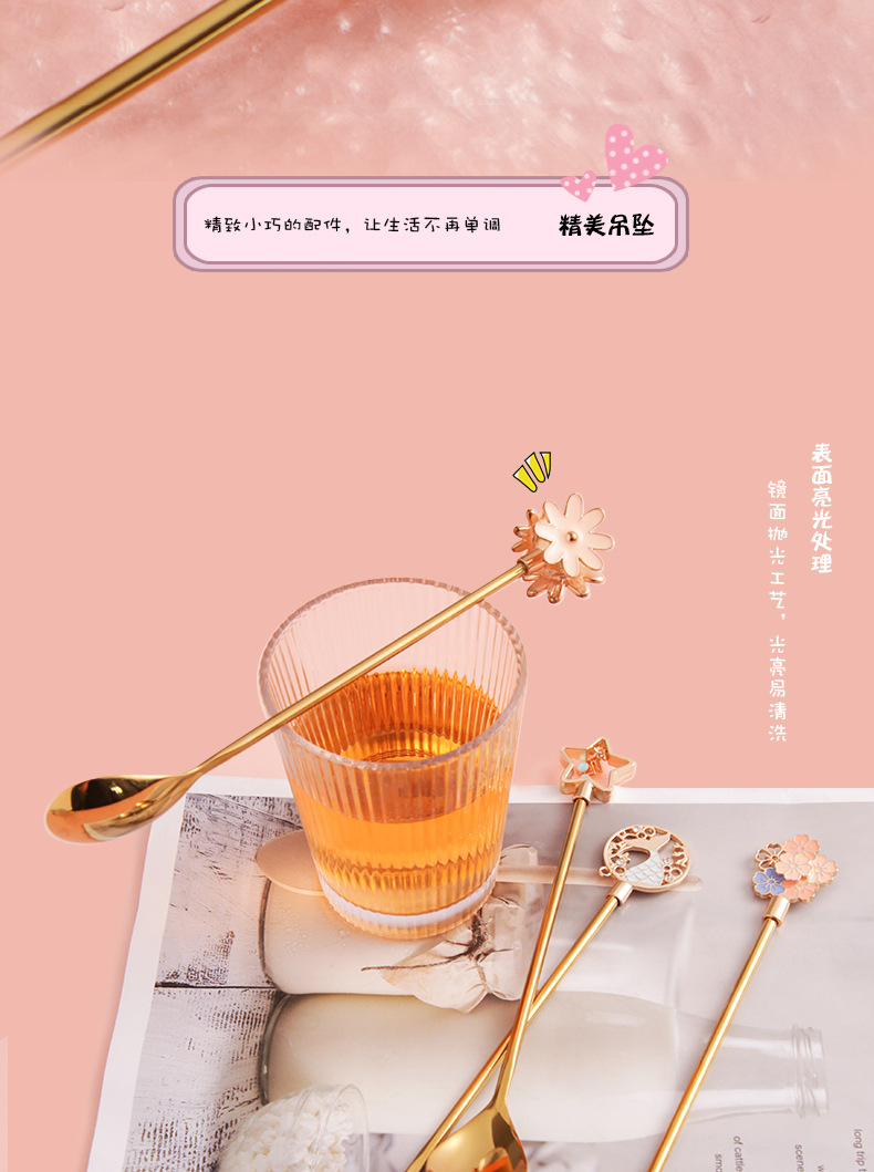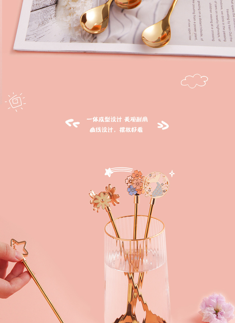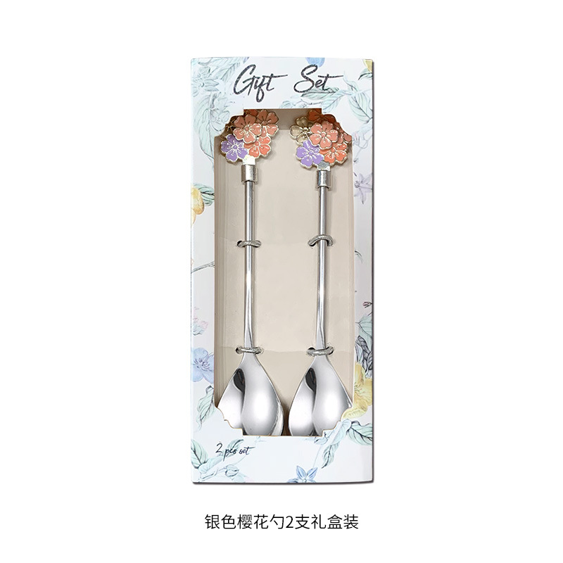 • 원래 색상 짧은 손잡이 벚꽃 2 선물 숟가락