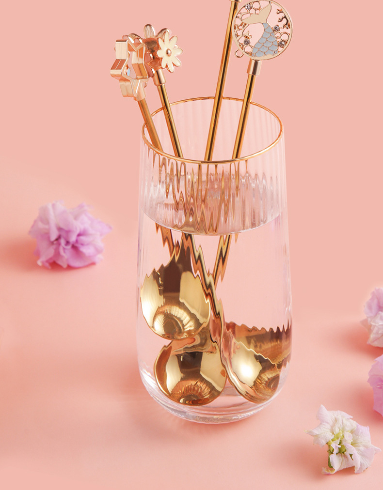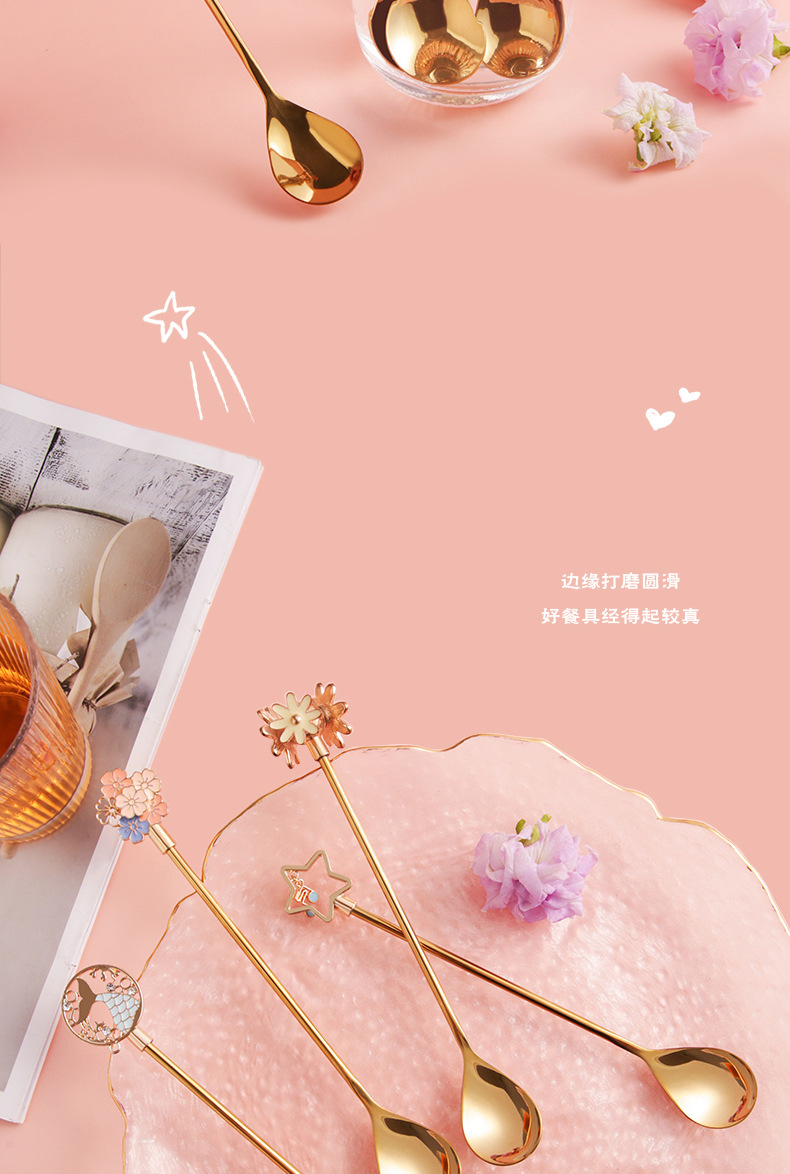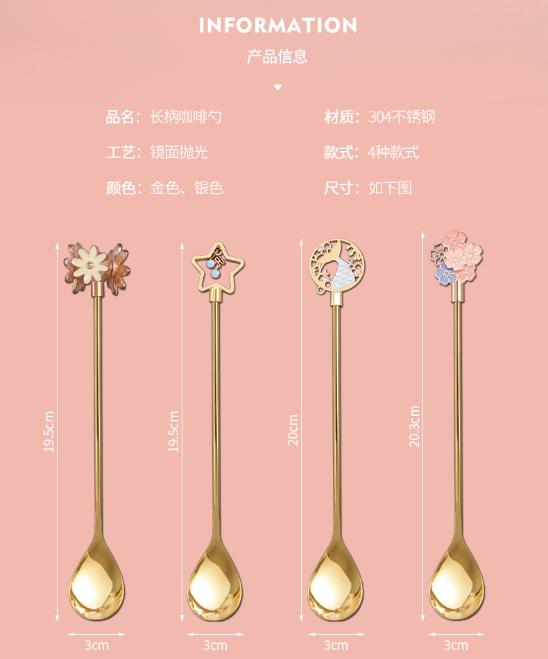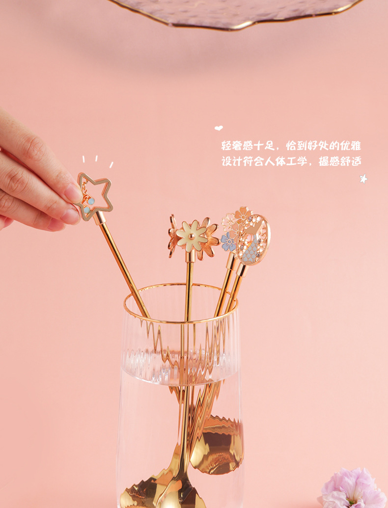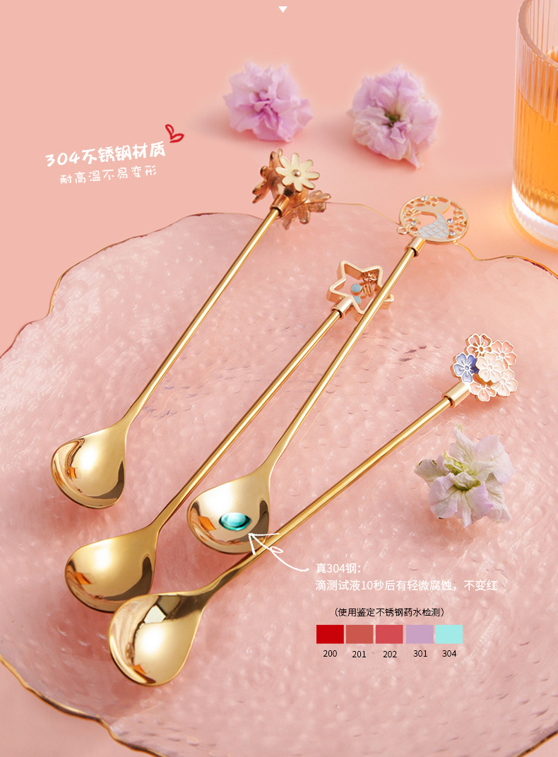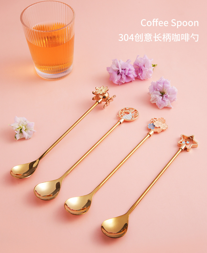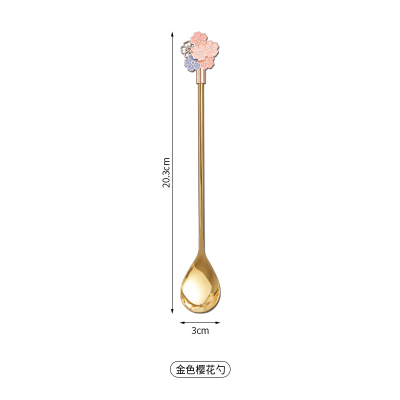 • 황금 짧은 손잡이 벚꽃 4 선물 숟가락