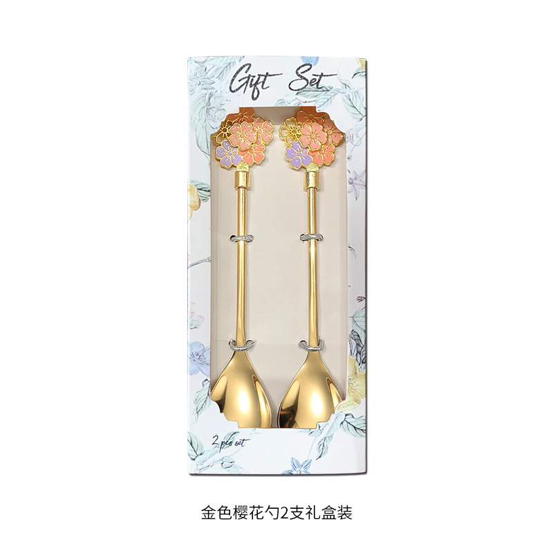 • 황금 짧은 손잡이 벚꽃 2 선물 숟가락