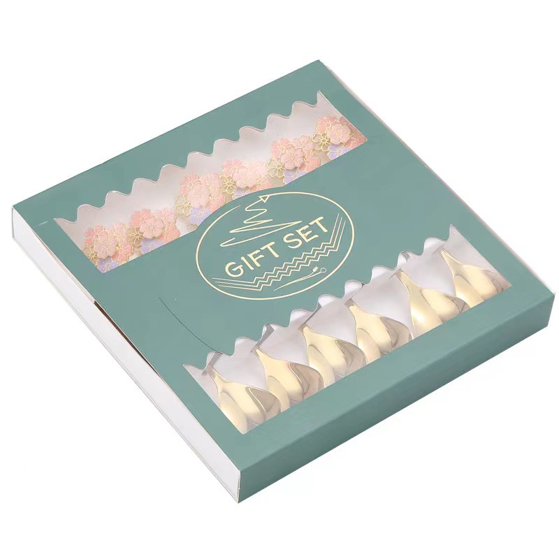 • 황금 짧은 벚꽃 6 선물 상자 숟가락