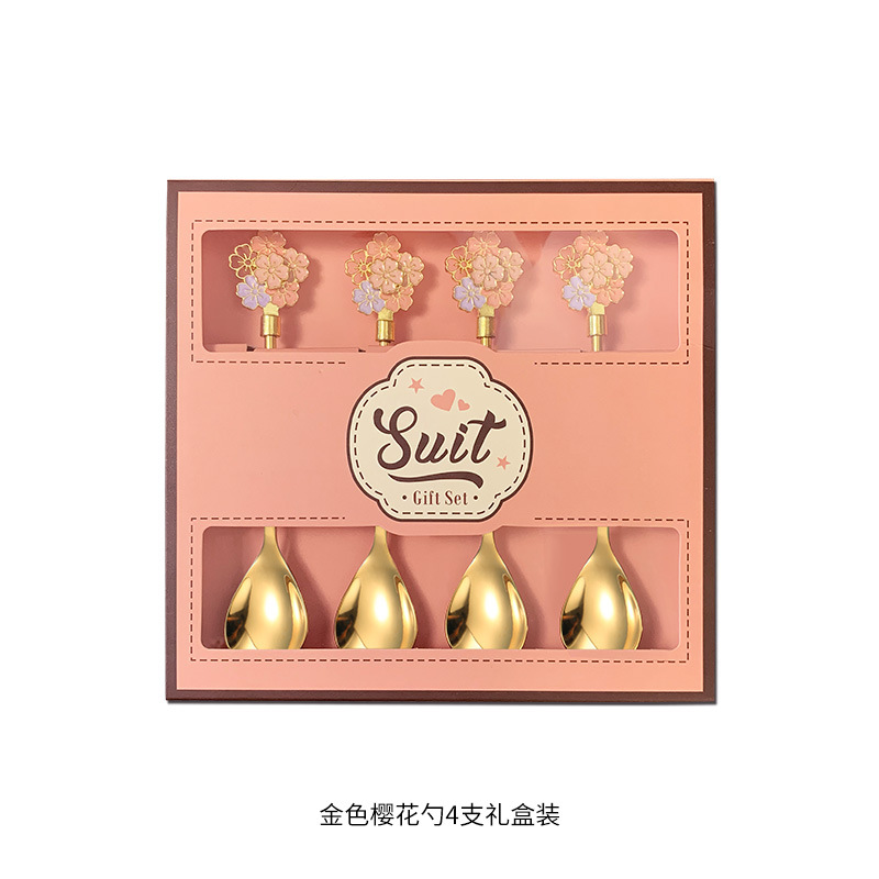 • 자연 색상 짧은 손잡이 벚꽃 4 선물 상자 숟가락