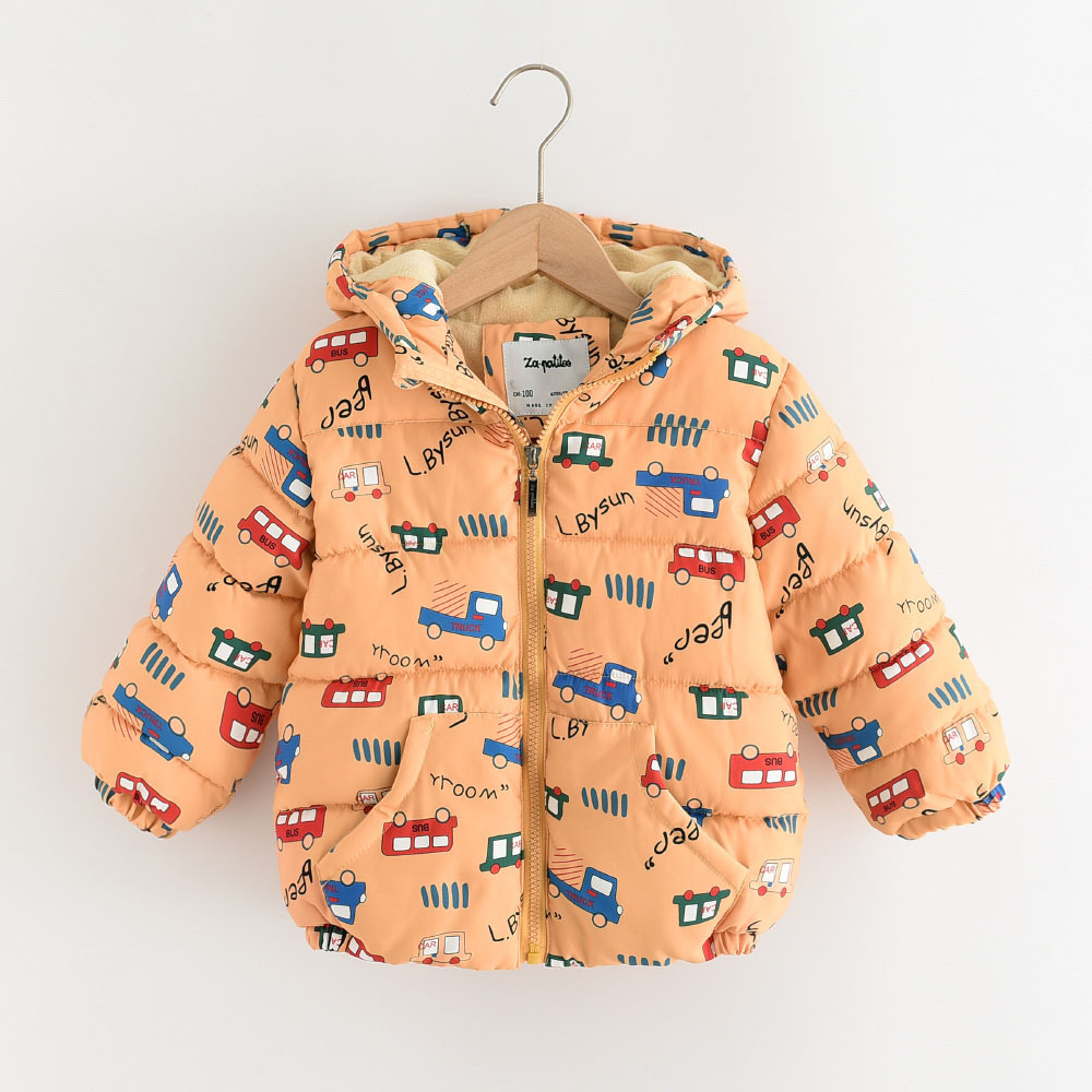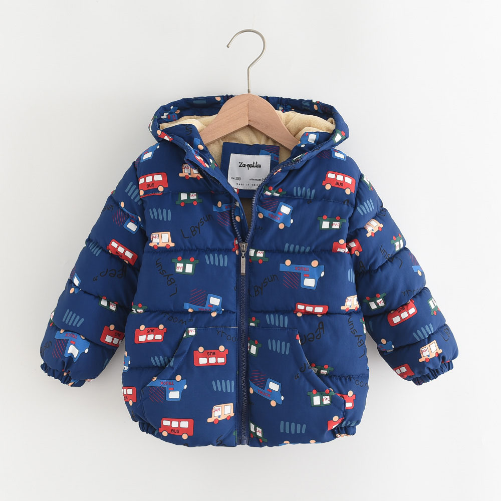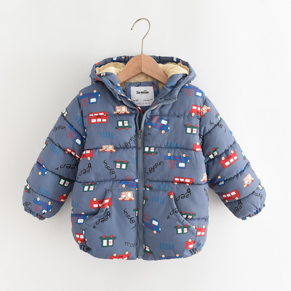 0709-05 2021 겨울 새 자동차 인쇄 소년 북극 양털 패딩 후드 코튼 코트스토어 가기