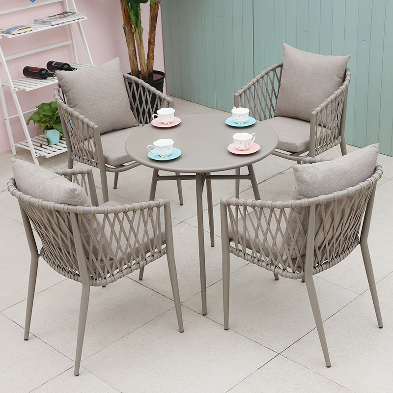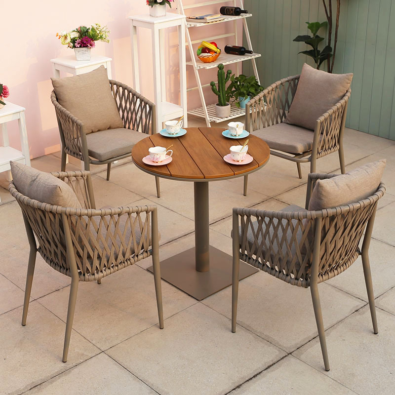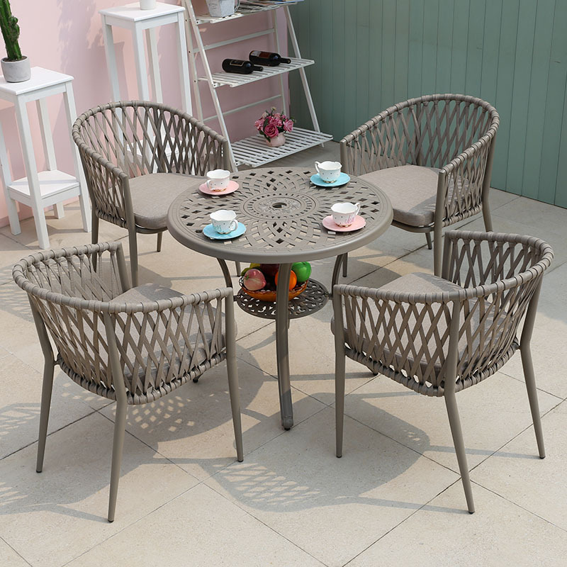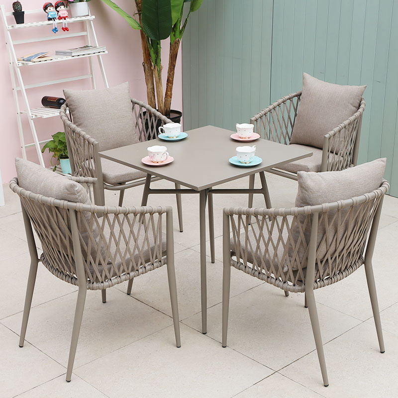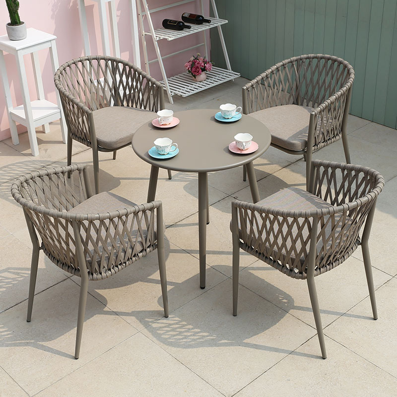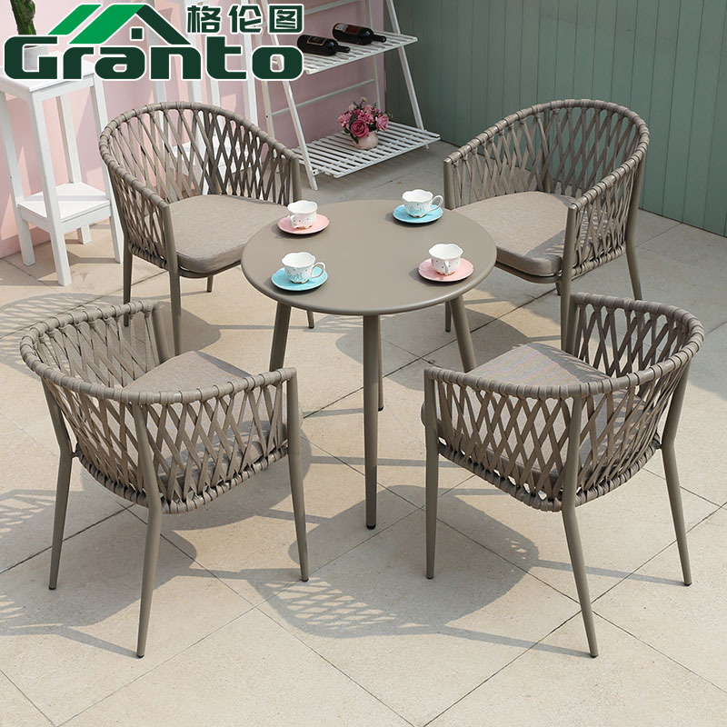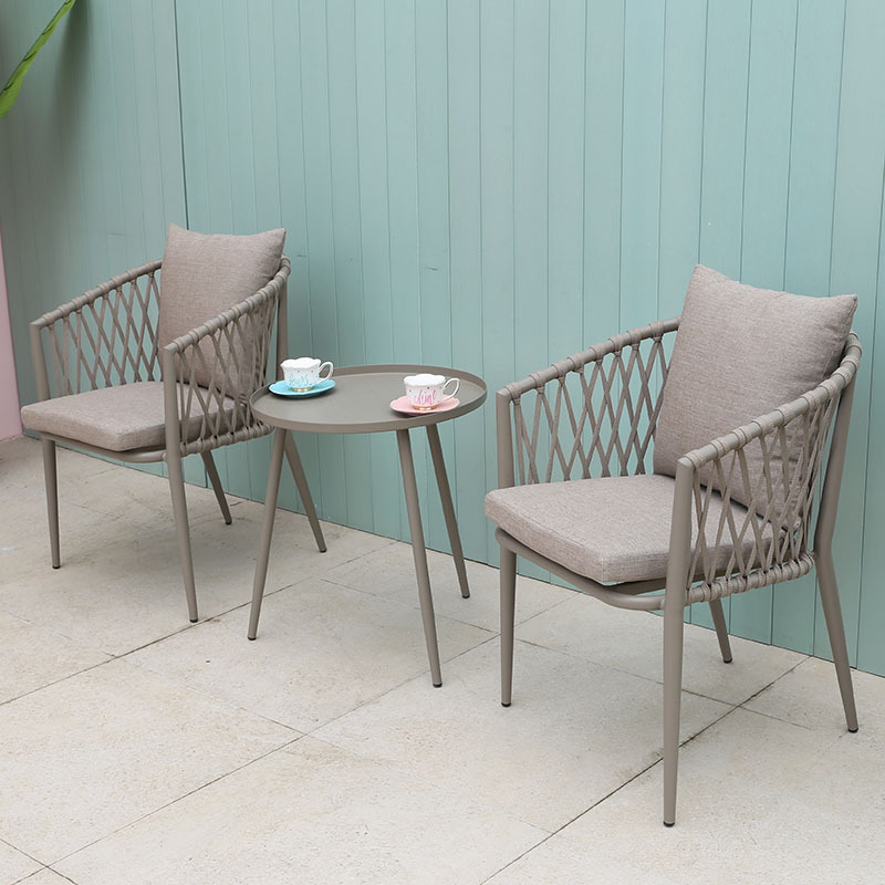 북유럽 스타일 야외 로프 작은 테이블과 의자 발코니 안뜰 정원 식탁과 의자 간단한 야외 레저 로프 의자 세트