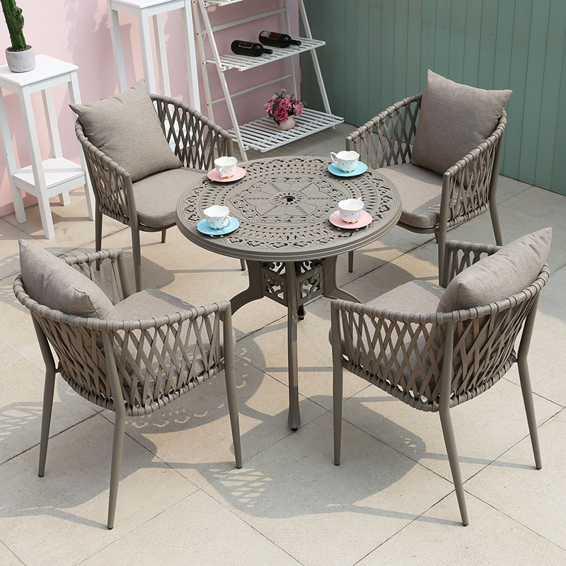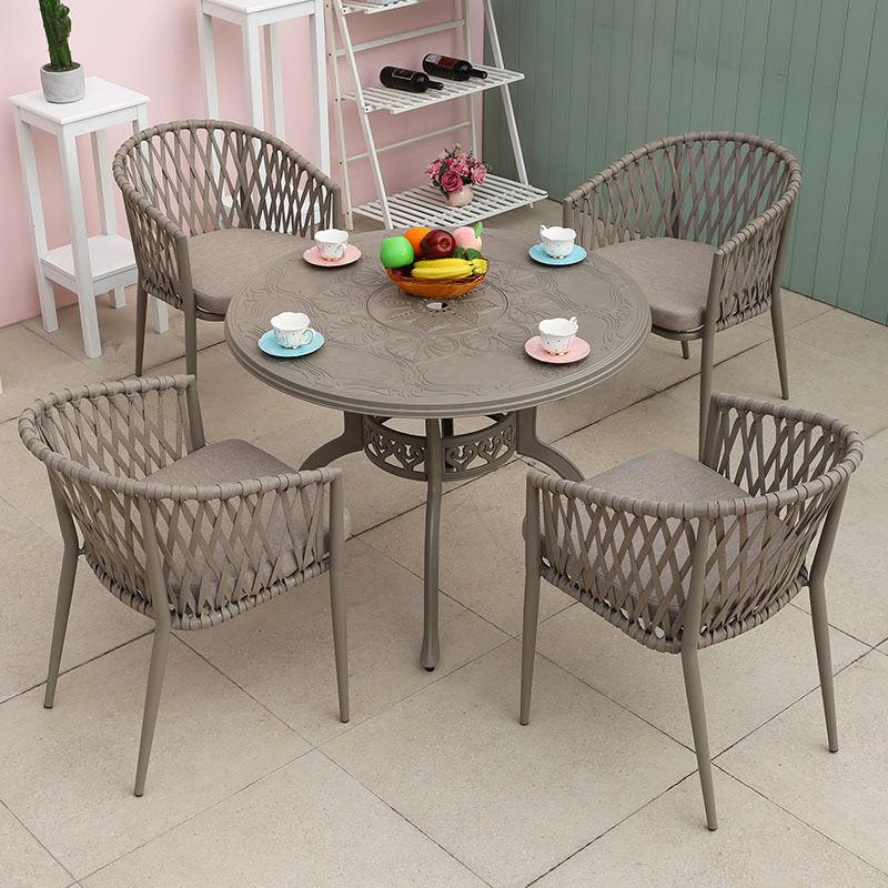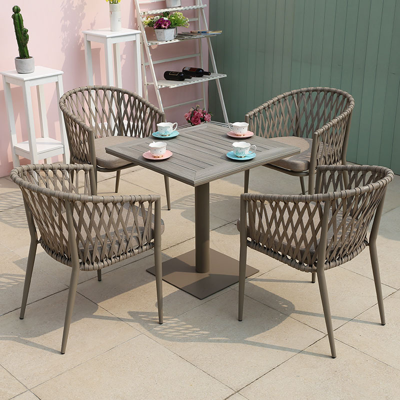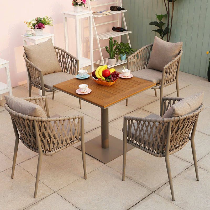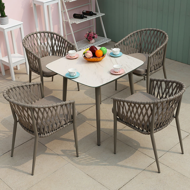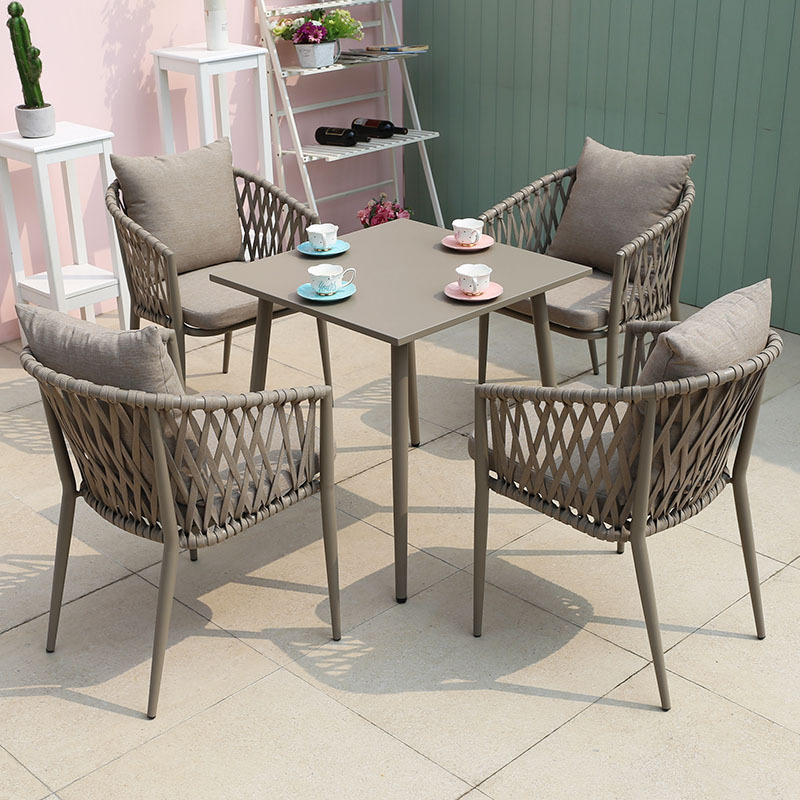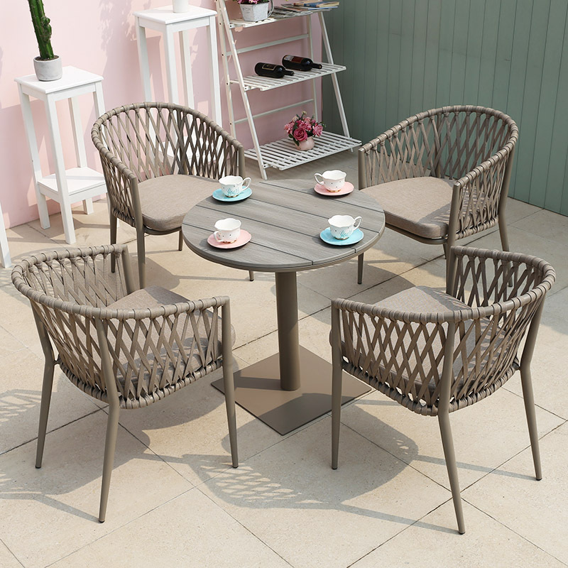 북유럽 스타일 야외 로프 작은 테이블과 의자 발코니 안뜰 정원 식탁과 의자 간단한 야외 레저 로프 의자 세트