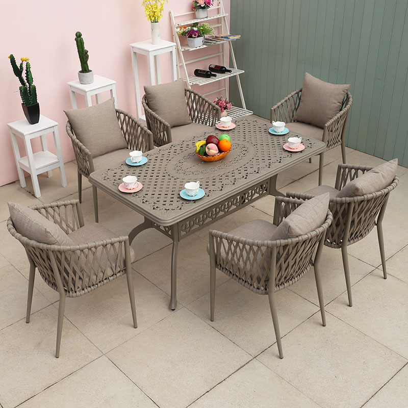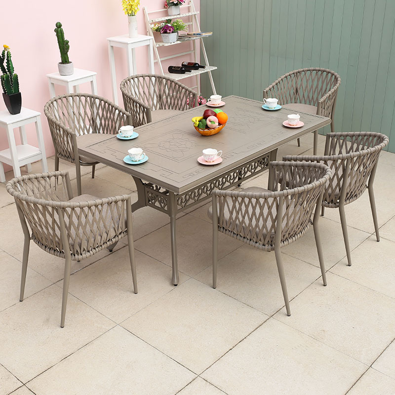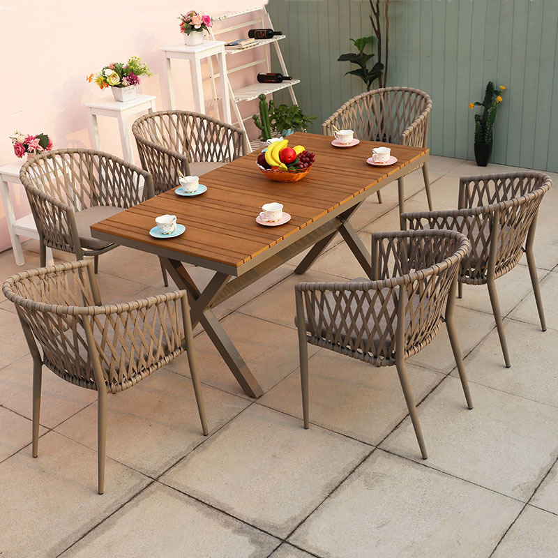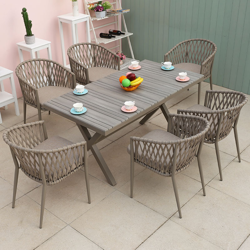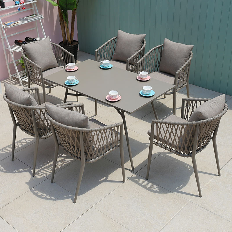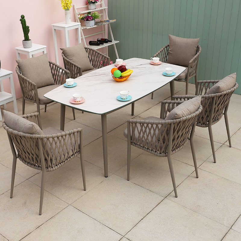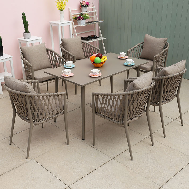 북유럽 스타일 야외 로프 작은 테이블과 의자 발코니 안뜰 정원 식탁과 의자 간단한 야외 레저 로프 의자 세트