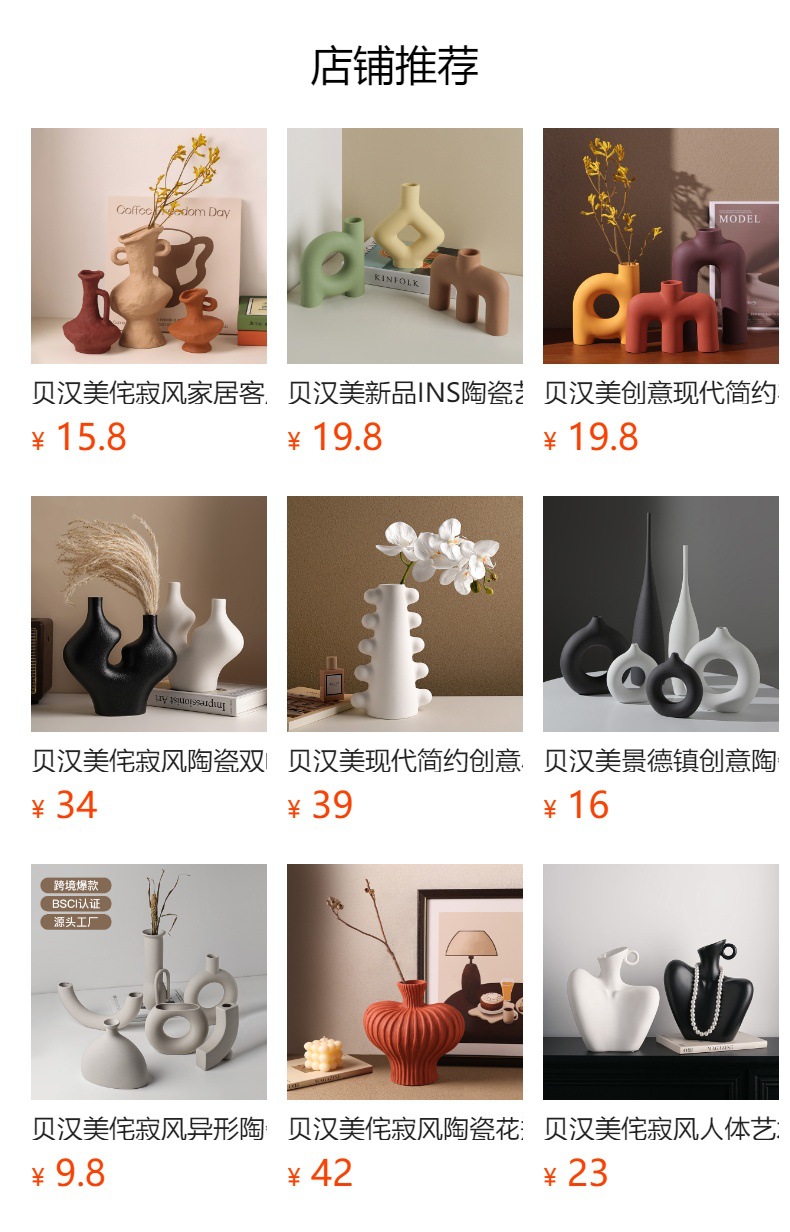Behanmei Wabi-sabi 스타일 크리 에이 티브 일반 세라믹 작은 꽃병 장식품 홈 장식 국경 간 인기 드롭 배송스토어 가기