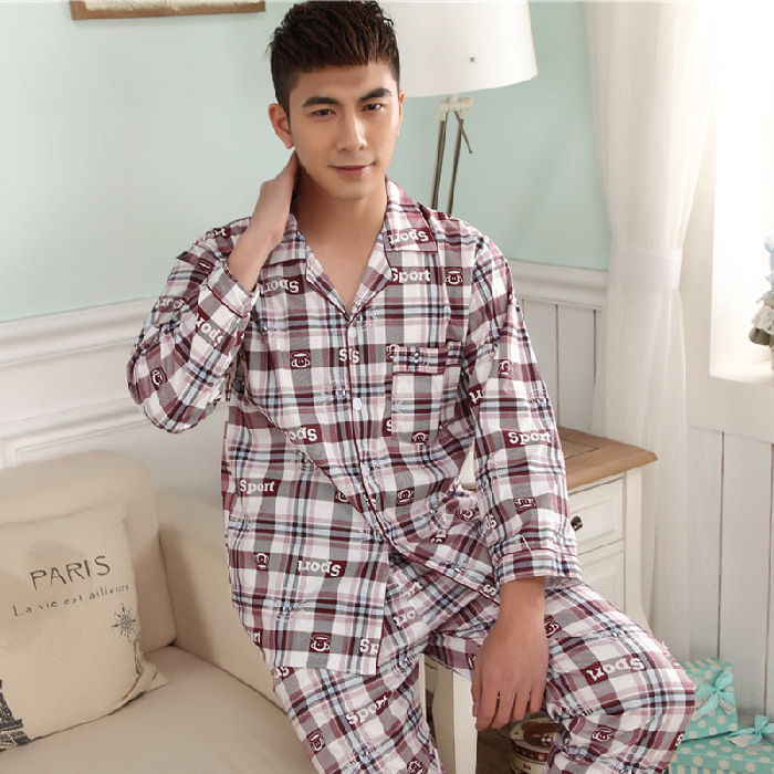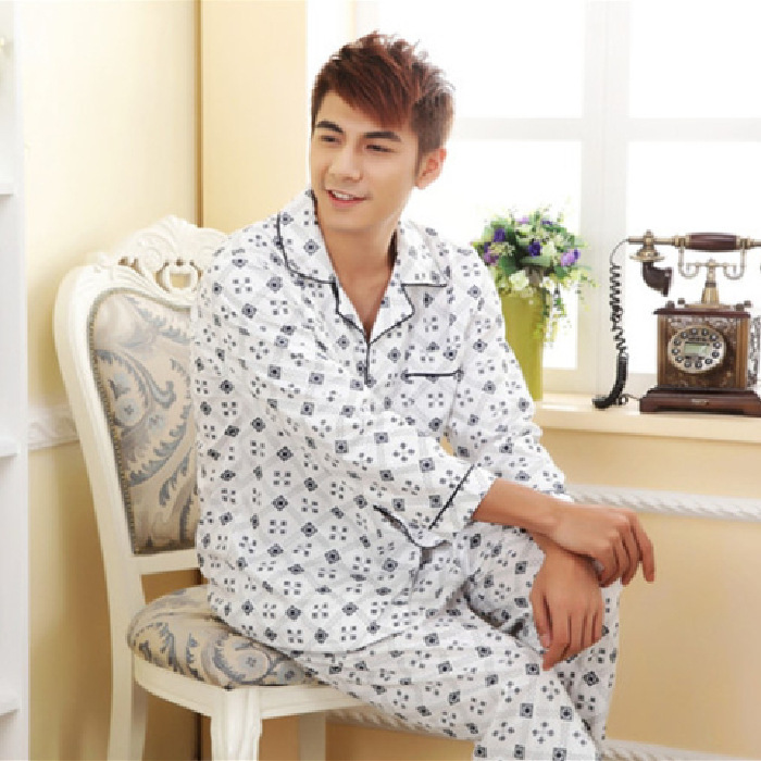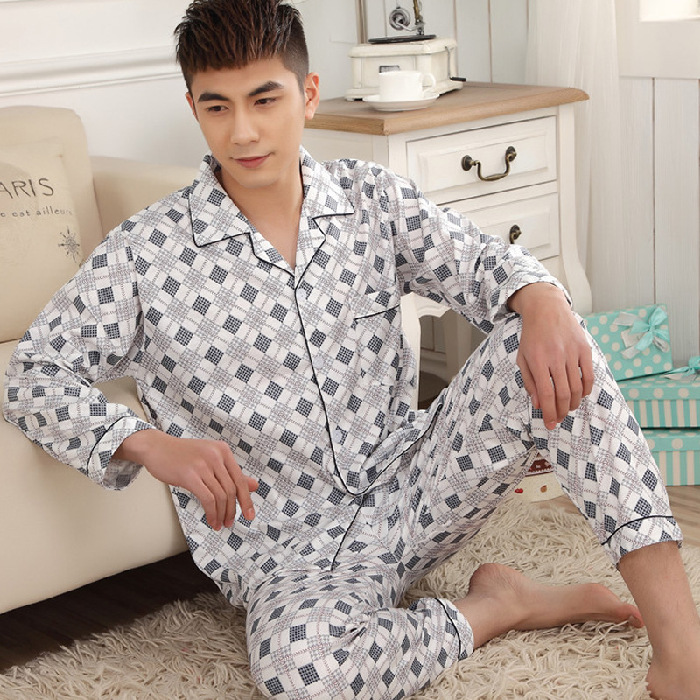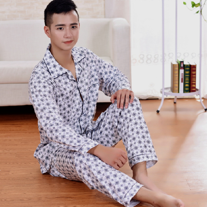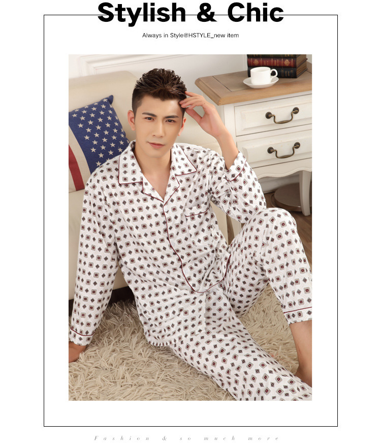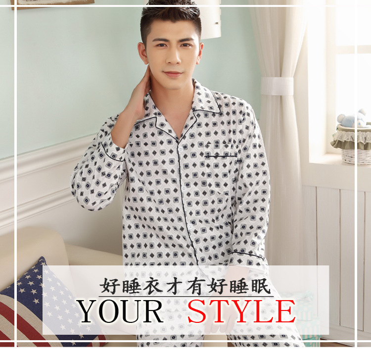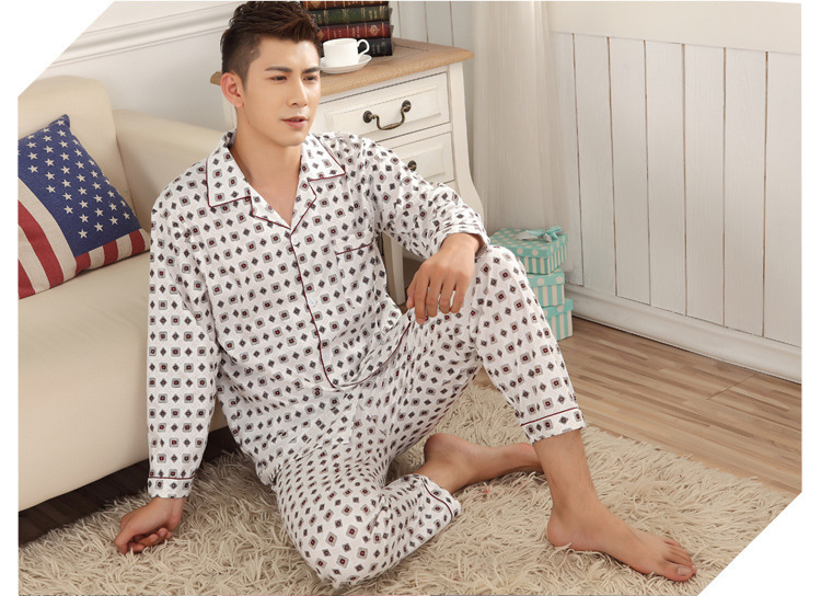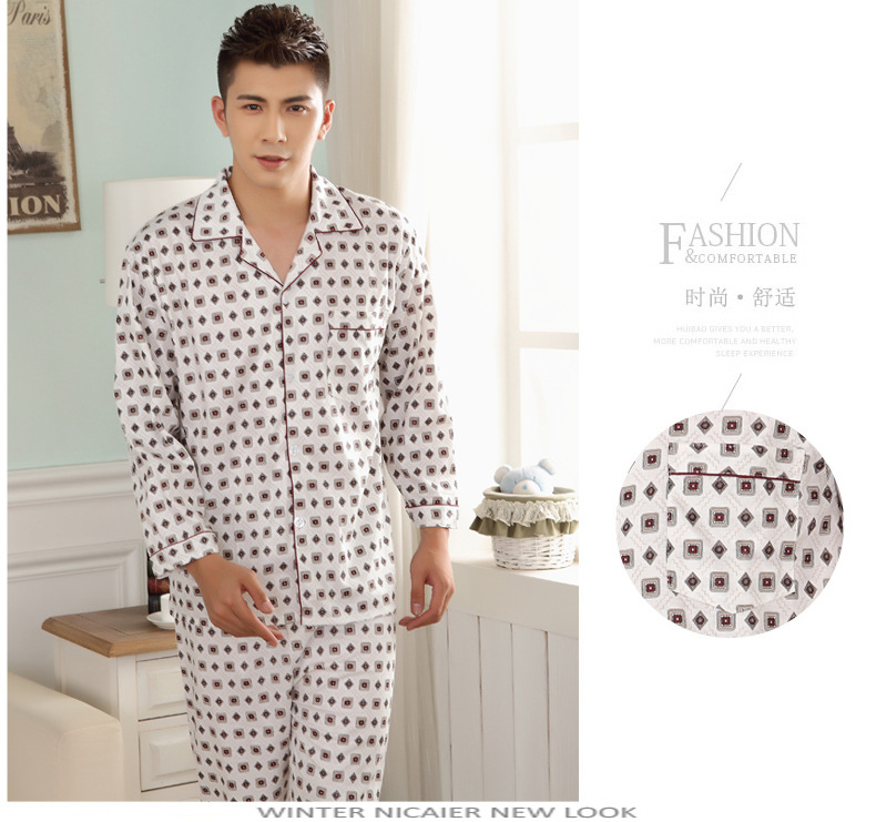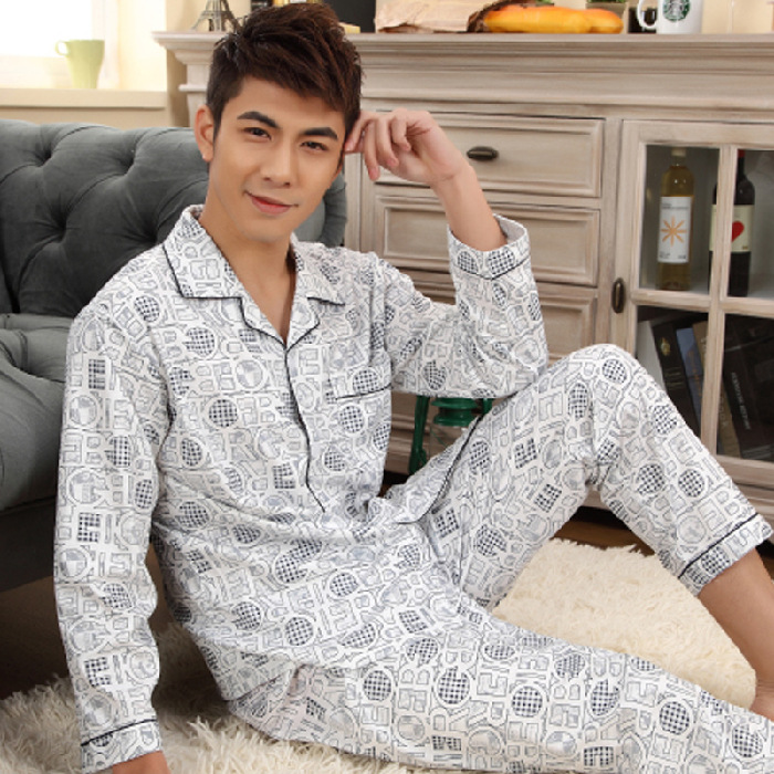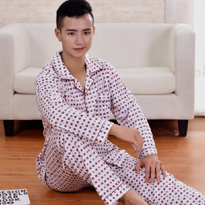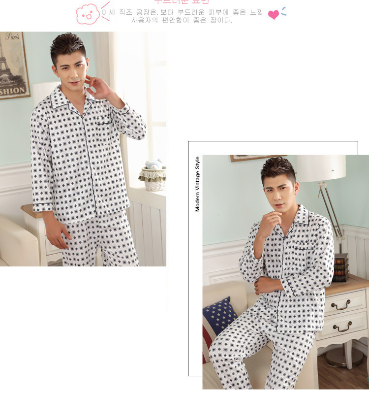 잠옷 남자의 긴팔 봄과 가을 남자의 니트 면 카디건 느슨한 잠옷 세트 잠옷 가정 옷 중년 및 노인