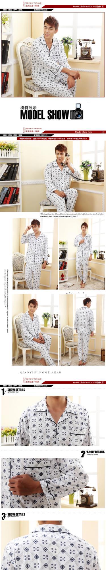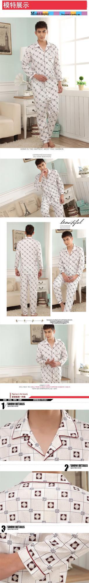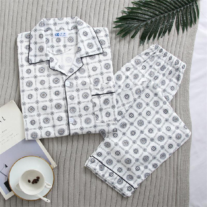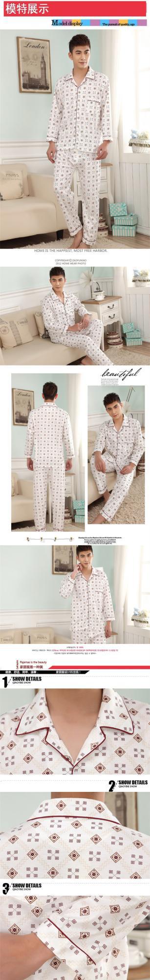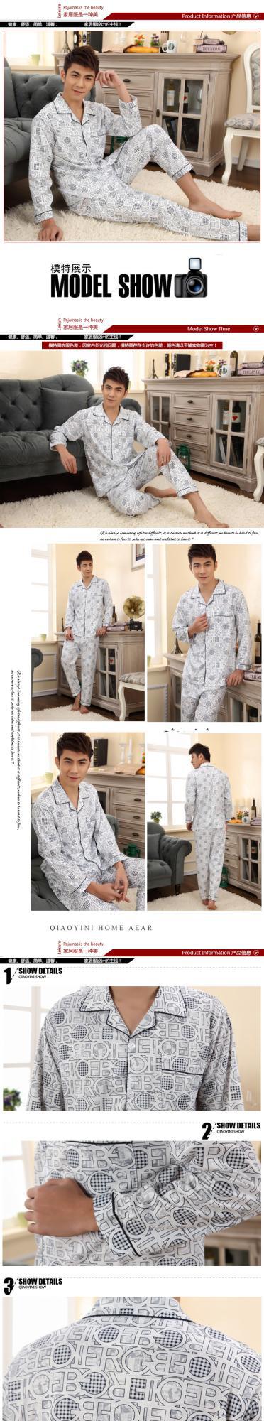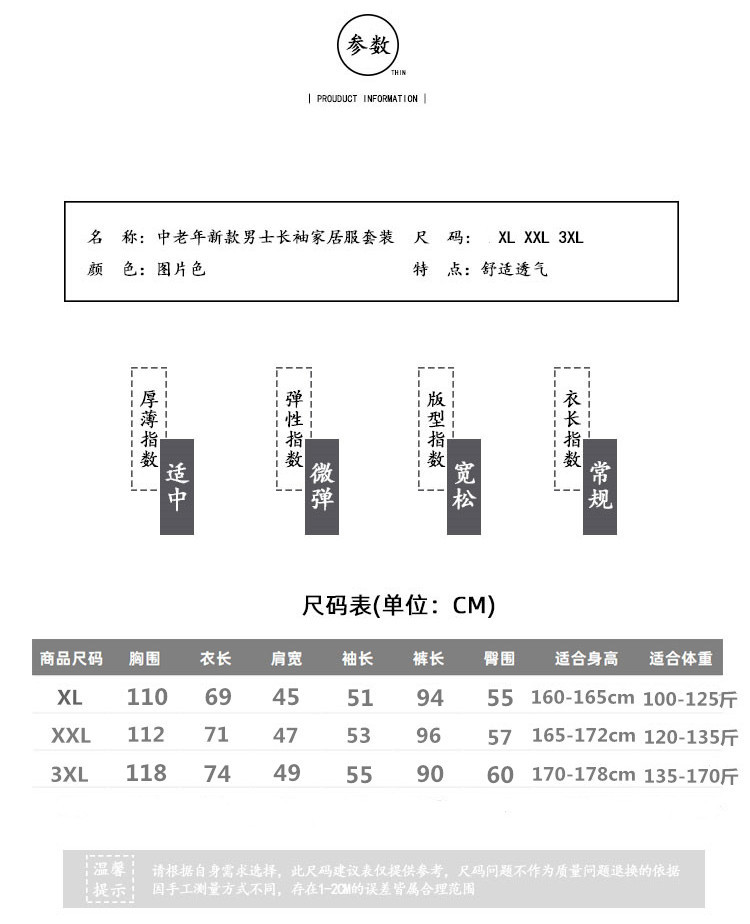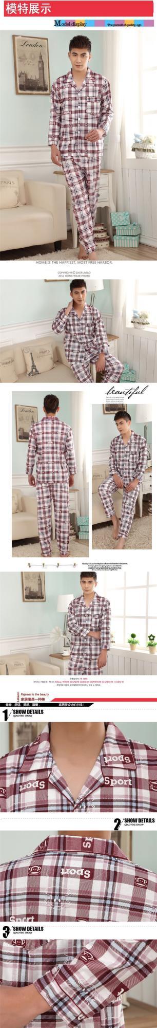 잠옷 남자의 긴팔 봄과 가을 남자의 니트 면 카디건 느슨한 잠옷 세트 잠옷 가정 옷 중년 및 노인스토어 가기
