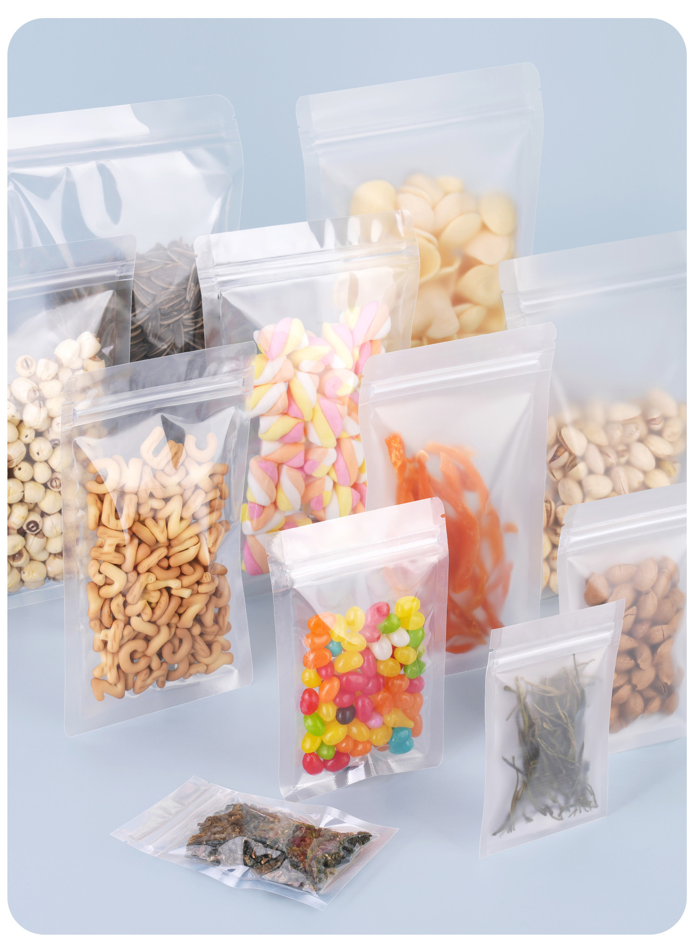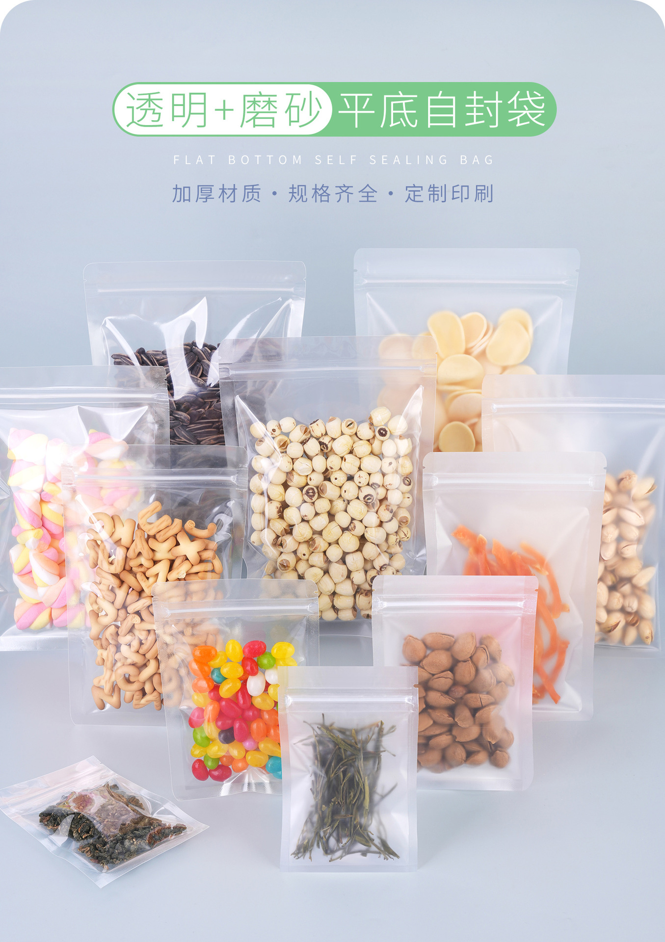 음식 향기 차 젖빛 자체 밀봉 가방 두꺼운 스몰 사이즈 간식 하위 포장 가방 투명 시험 먹는 플라스틱 밀봉 입 포장 가방