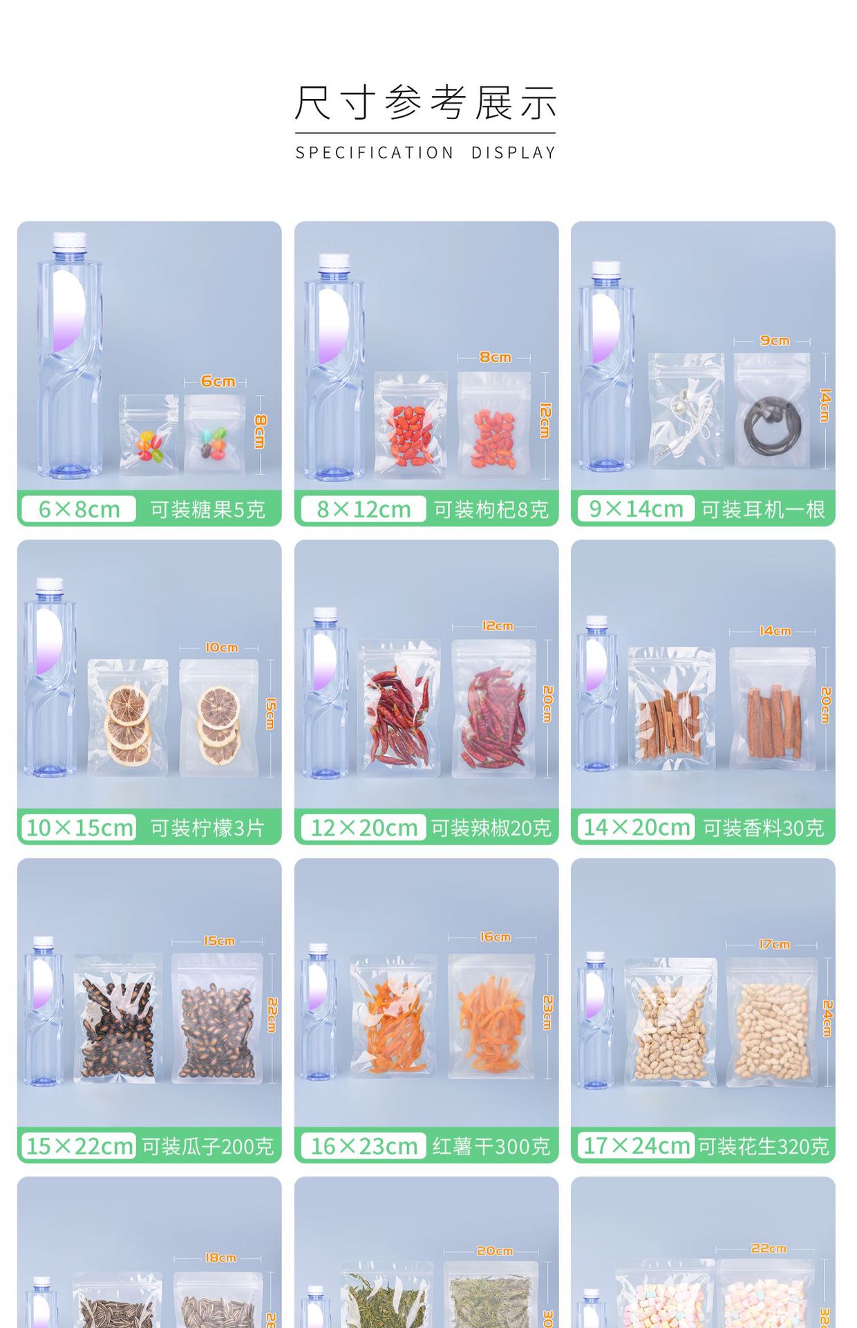 • (둥근) 12*20cm * 투명한 평평한 바닥