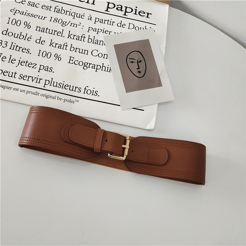여자의 스트레치 허리 씰 사각 버클 핀 버클 와이드 벨트 스트랩 바디 쉐이핑 유행 아웃웨어 액세서리 셔츠 원피스 장식 벨트스토어 가기