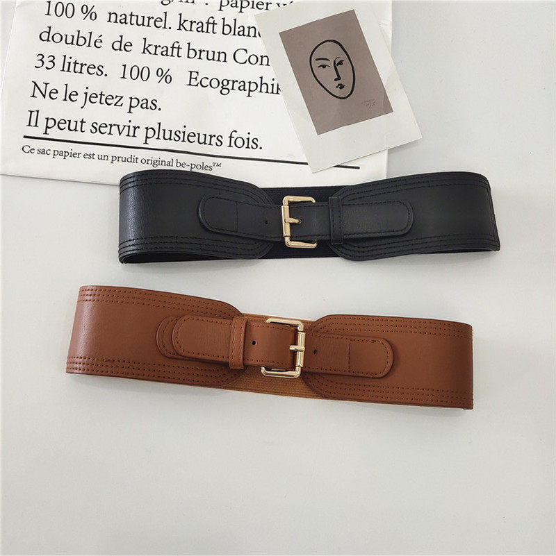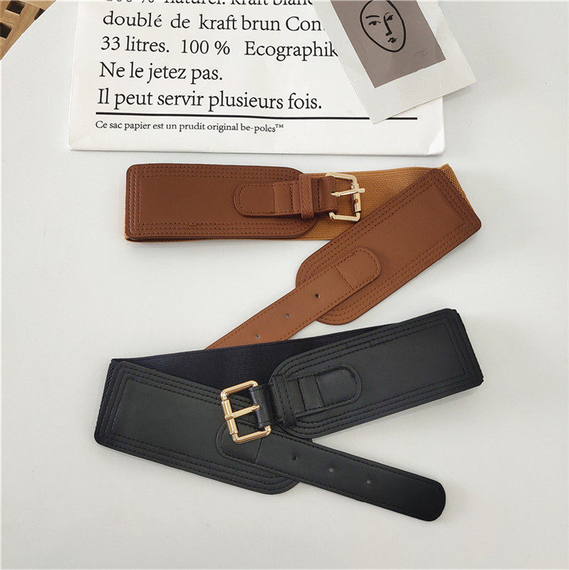 여자의 스트레치 허리 씰 사각 버클 핀 버클 와이드 벨트 스트랩 바디 쉐이핑 유행 아웃웨어 액세서리 셔츠 원피스 장식 벨트
