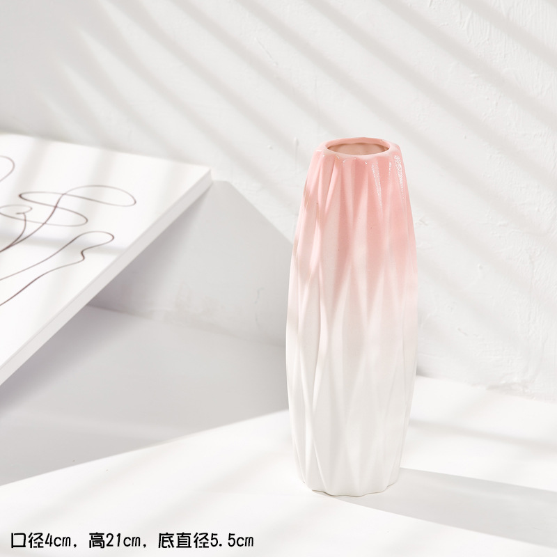 슈멘 그라디언트 핑크 세라믹 말린 꽃병 북유럽 크리 에이 티브 홈 장식 거실 침실 책상 꽃꽂이
