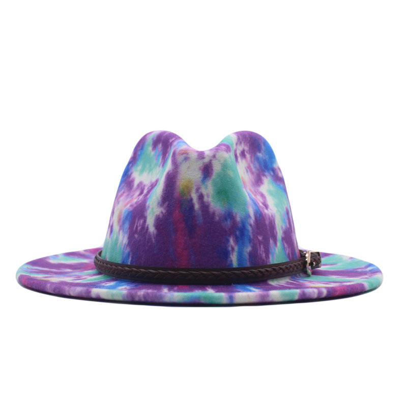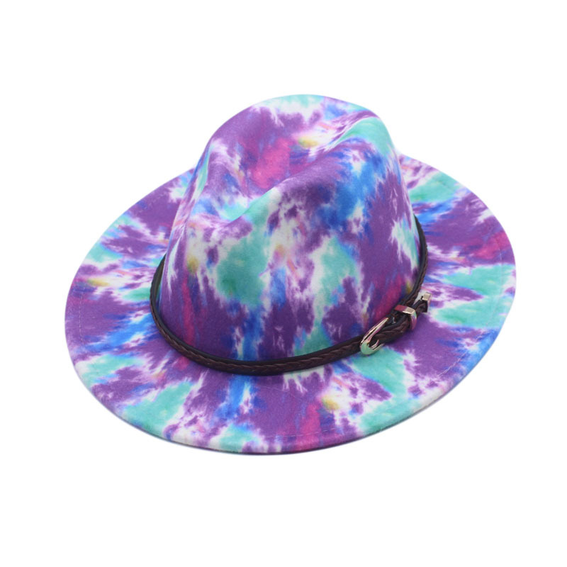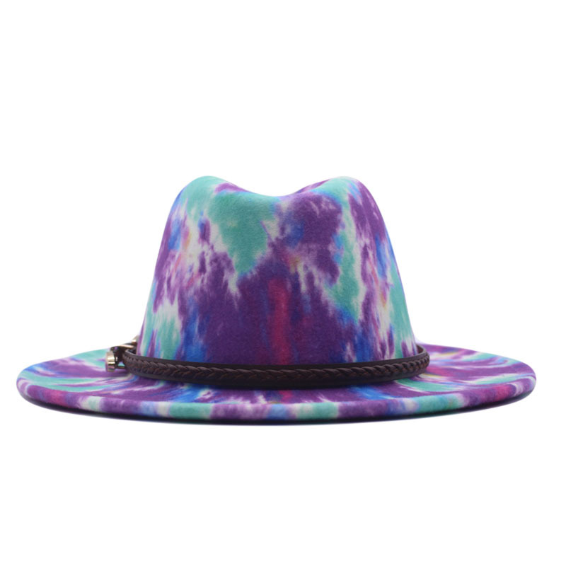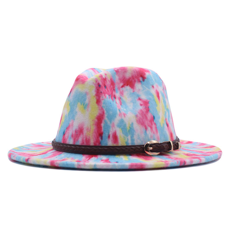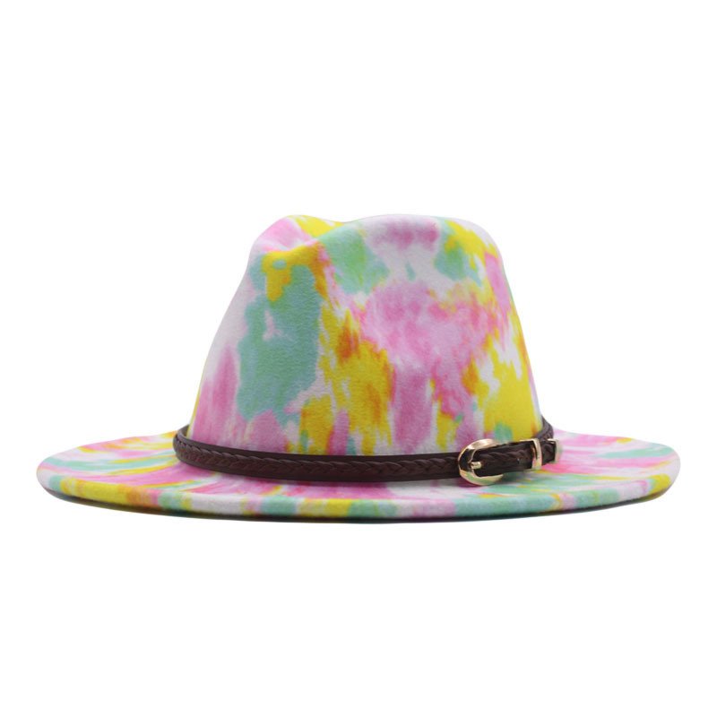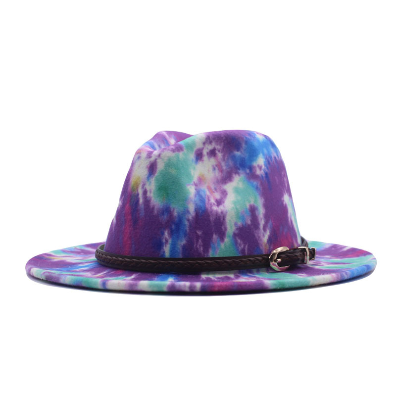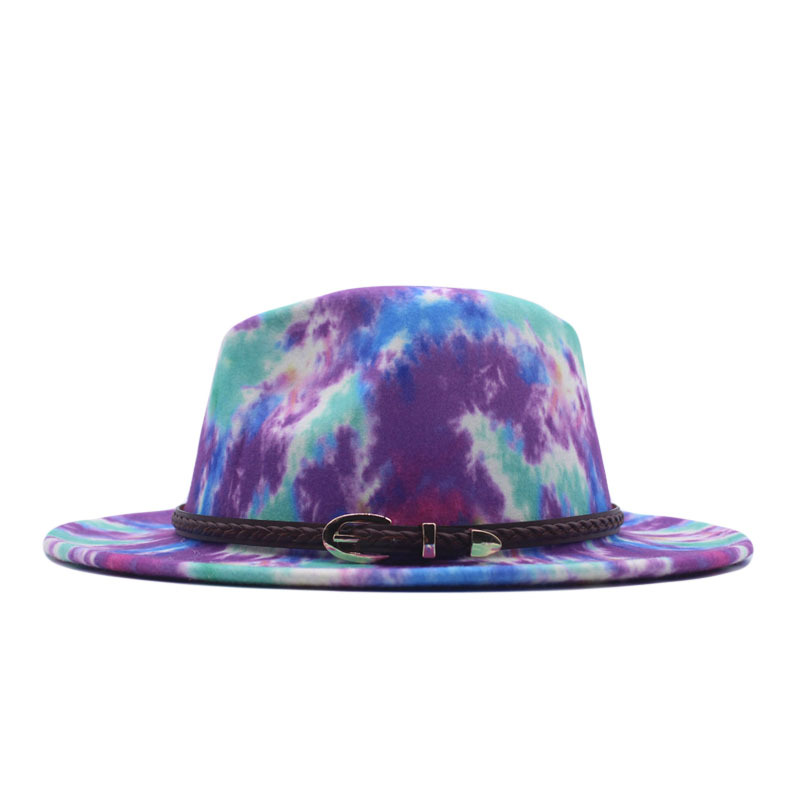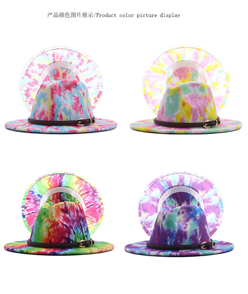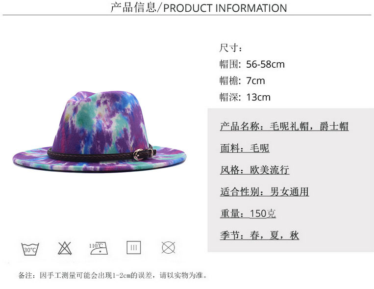 가을과 겨울 남성과 여성의 새로운 꽃 디지털 양면 인쇄 큰 챙이 모자 유럽과 미국 패션 영국 스타일 모직 재즈 모자스토어 가기