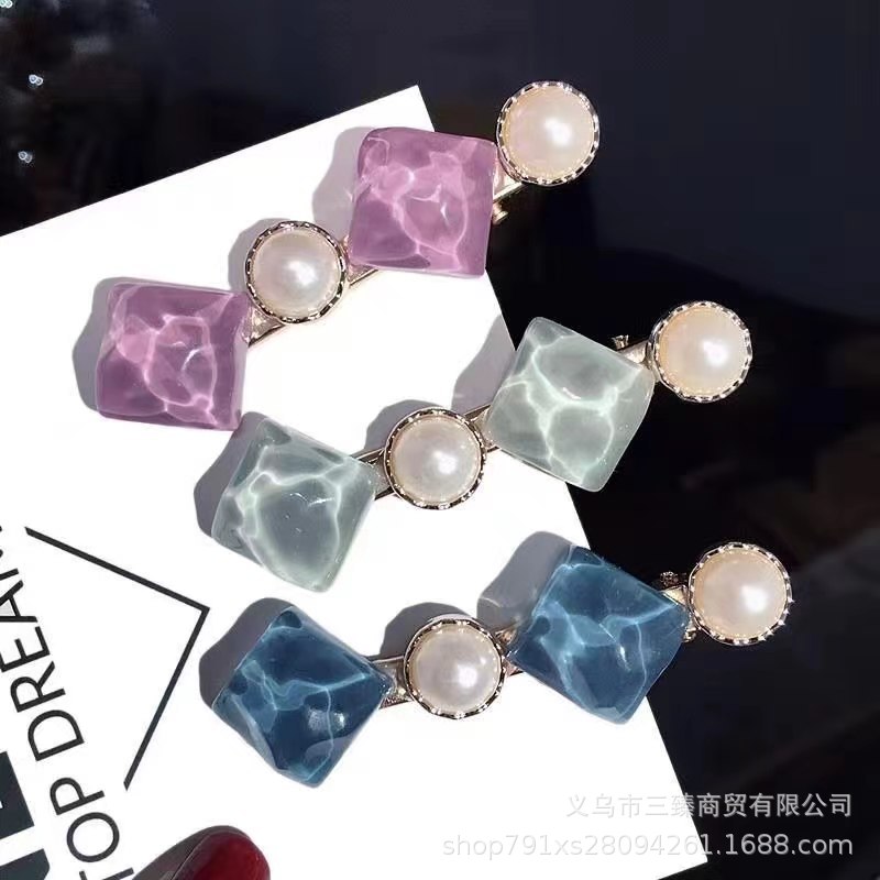 跨境网红马卡龙发夹头饰四叶草夹子女士头饰气质边夹一字夹刘海夹undefined