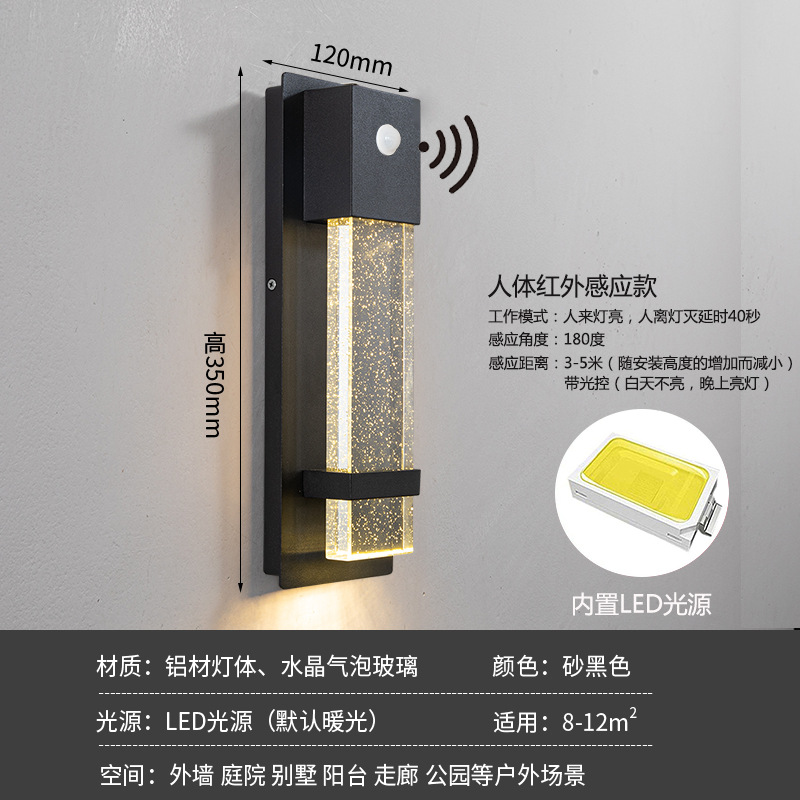 야외 크리스탈 벽 램프 방수 발코니 복도 통로 빌라 램프 안뜰 문 입구 간단한 LED 센서 램프