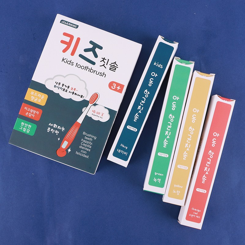 새로운 호박 손잡이 아이들의 부드러운 강모 칫솔 4 PC 3-12 세 아기 칫솔 만화 박스 국경 간 재고 도매스토어 가기