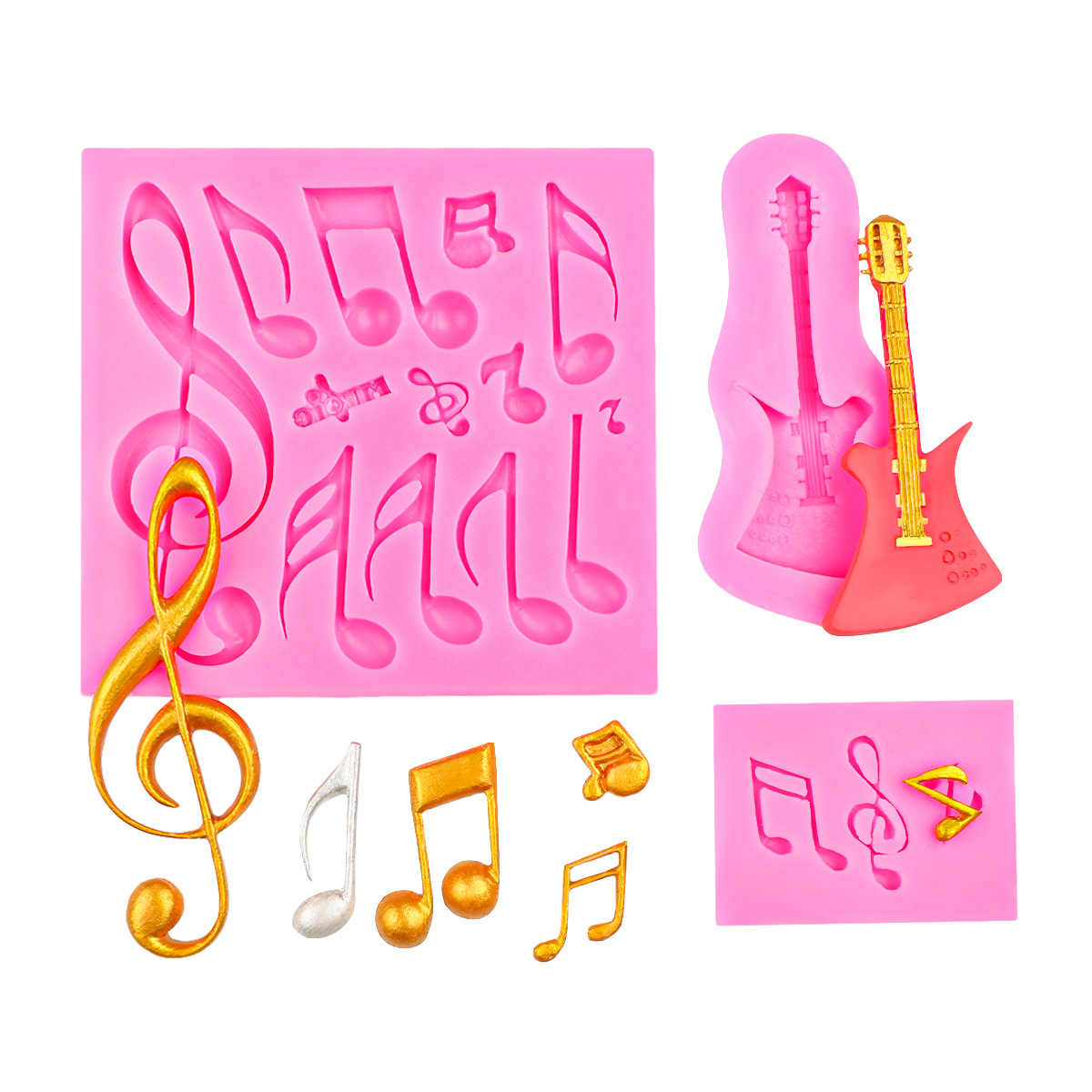 名称:翻糖蛋糕音乐主题音符吉他翻糖硅胶模具巧克力装饰硅胶模滴胶粘土