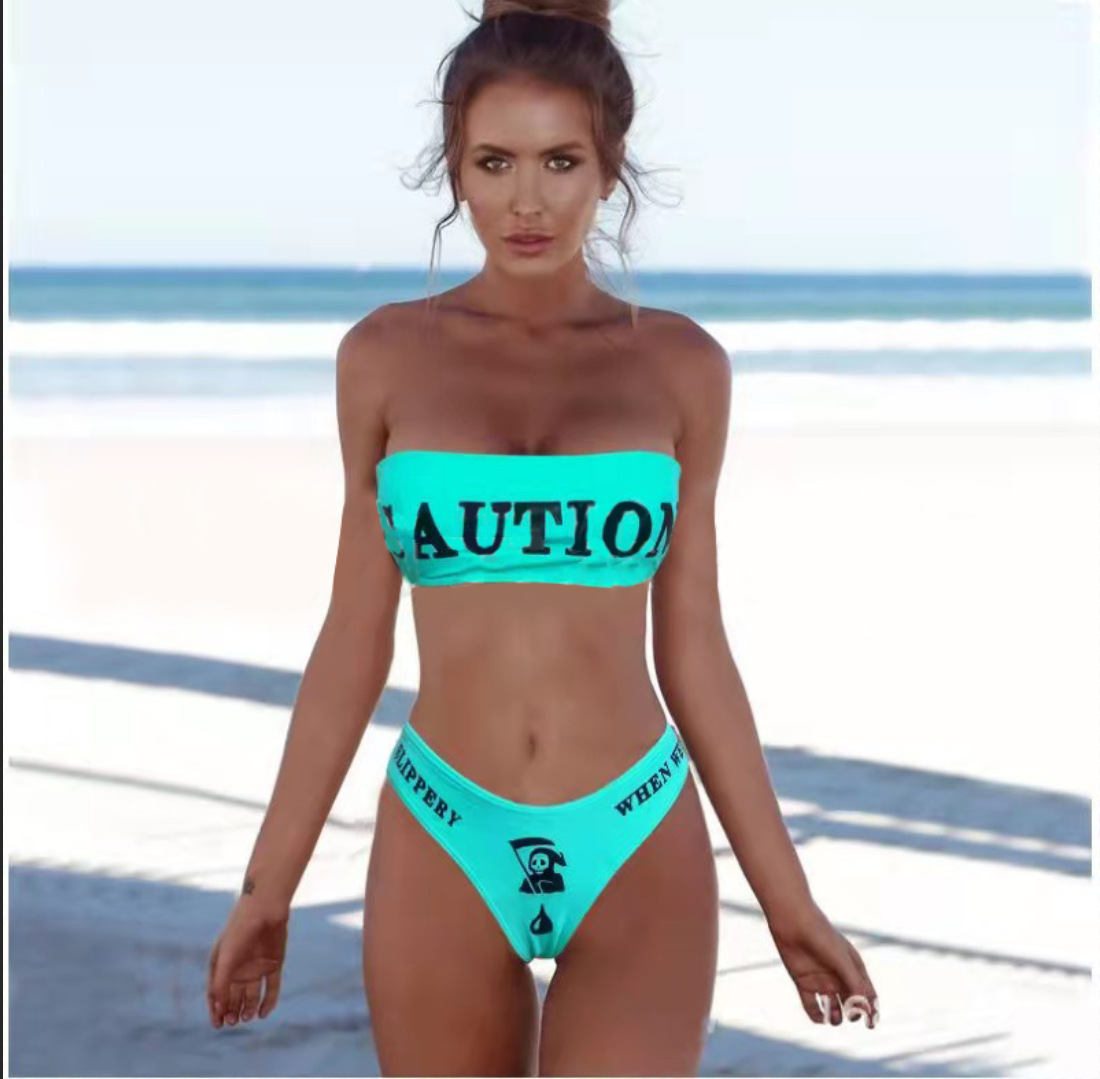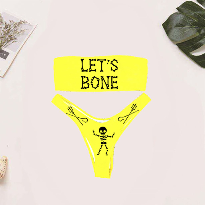 새로운 재미있는 유럽과 미국 대외 무역 비키니 오프셋 섹시한 곡선 해골 끈이없는 수영복 여성