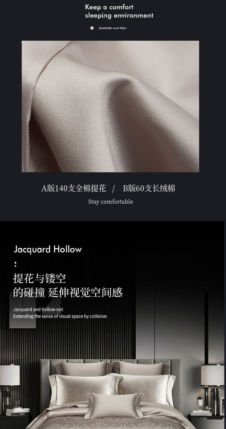 140 신장 롱 스테이플 코튼 코튼 자카드 4 피스 고급 5 성급 호텔 이불 커버 침구