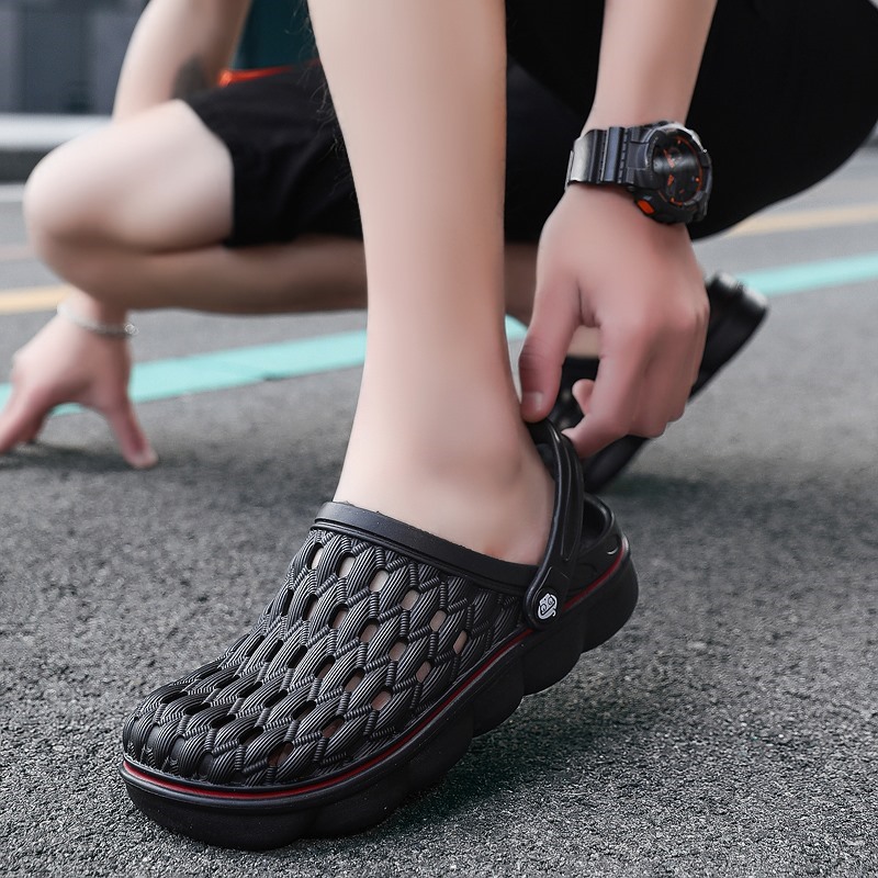 2021 여름 구멍 신발 남성용 정원 신발 야외 슬리퍼 Baotou 슬리퍼 이중 사용 샌들 가정용 하프 슬리퍼 비치 샌들