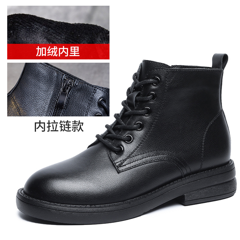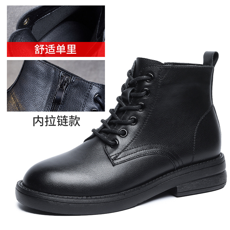 2022 가을과 겨울 정품 가죽 얇은 다용도 패션 마틴 부츠 앞 레이스 업 부드러운 가죽 두꺼운 굽 한국 스타일 간단한 여성 신발스토어 가기