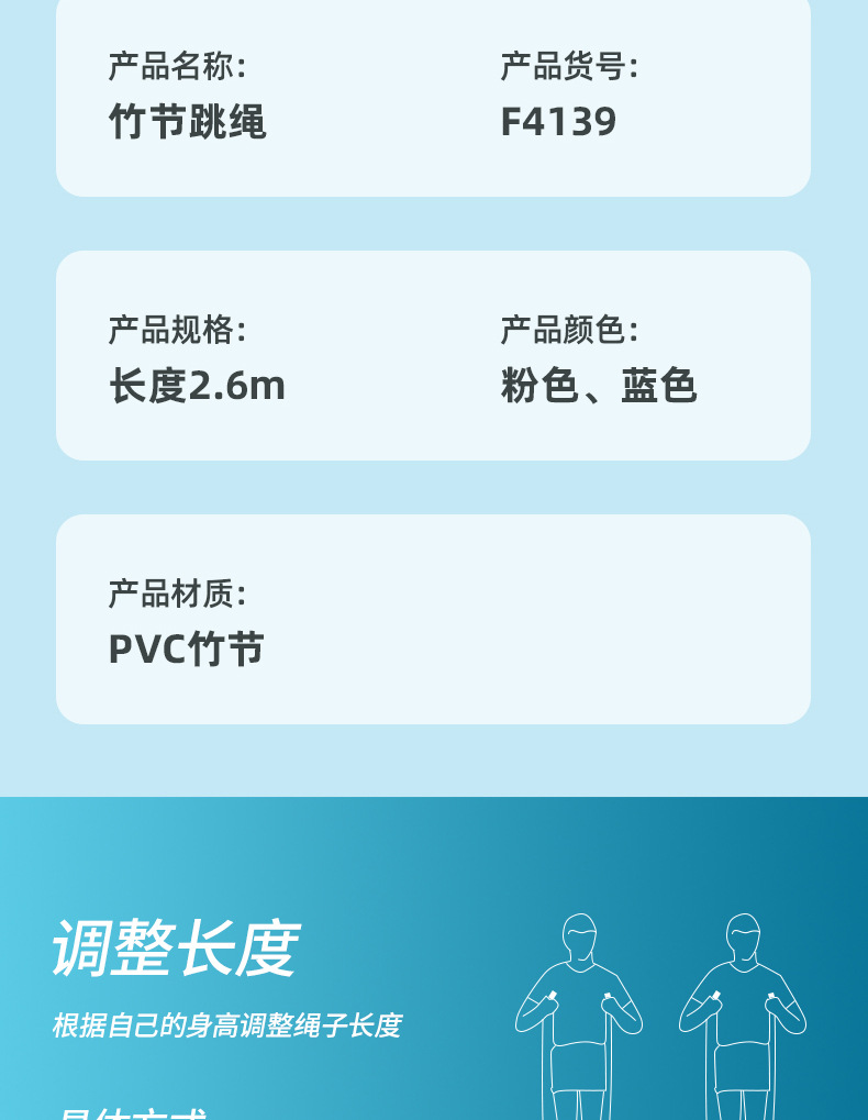 델리 F4139 Angonet 대나무 로프 건너 뛰기 PVC 소재 고무 코팅 핸들 어린이 로프 건너 뛰기 운동 피트니스 조절 가능