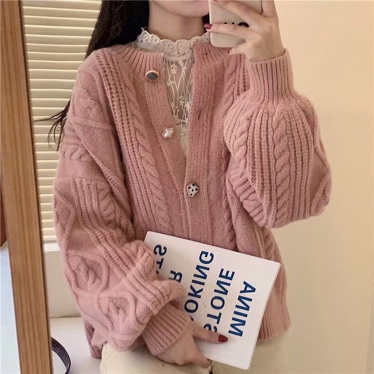 한국 스타일 루즈핏 니트 가디건 여성용 가을 겨울 신상 라운드넥 부드럽고 온화한 기질의 스웨터 코트스토어 가기