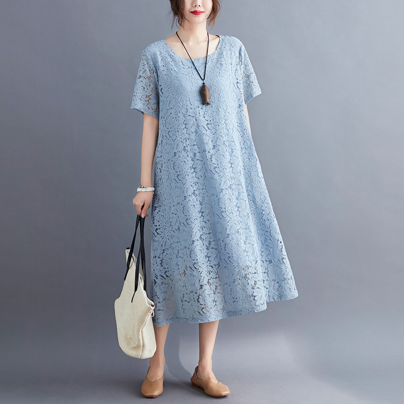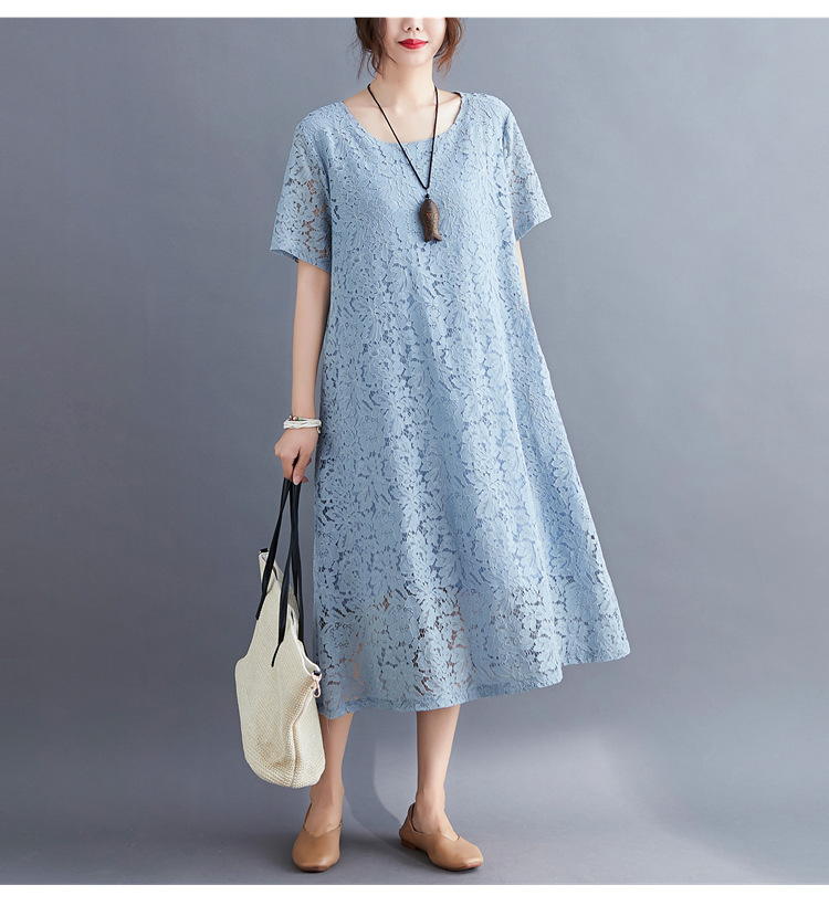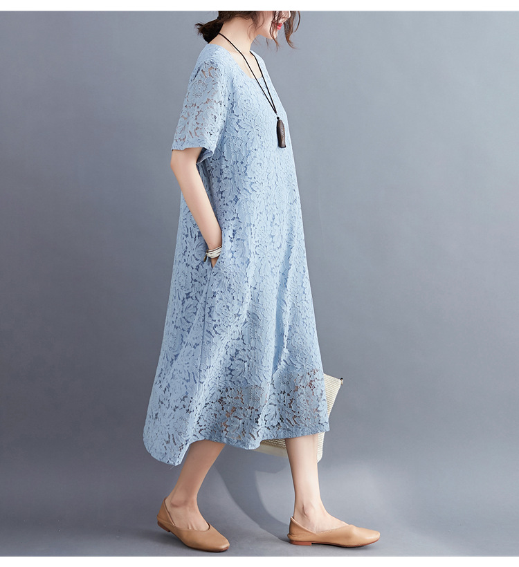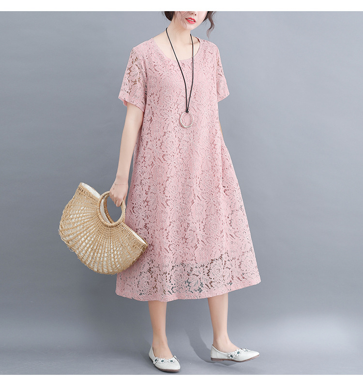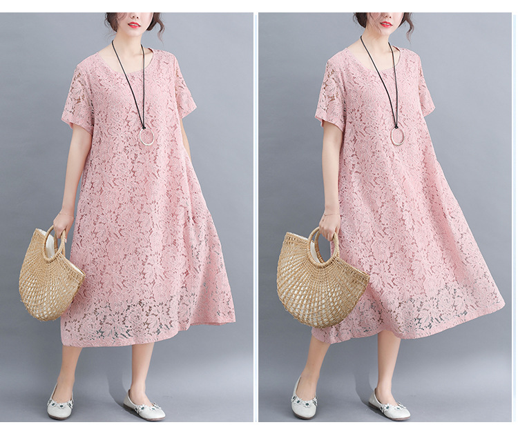 820 # 실제 촬영 재고 2021 여름 새로운 한국 스타일 다목적 슬리밍 레이스 통통녀 플러스 사이즈 원피스스토어 가기