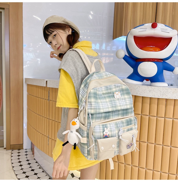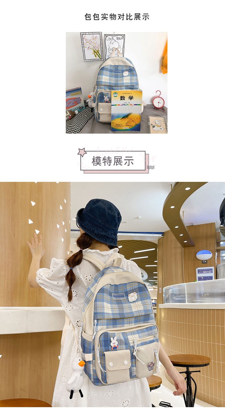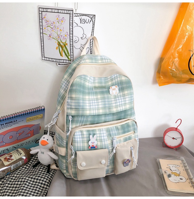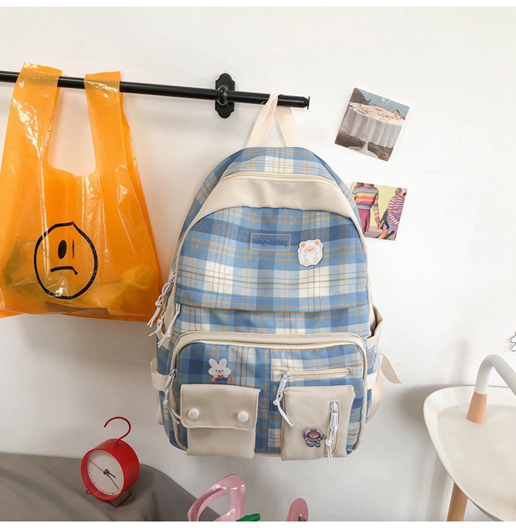 In 스타일 책가방 여자의 2021 여름 한국 스타일 캠퍼스 격자 무늬 배낭 여자 ulzzang 고등학생 배낭스토어 가기
