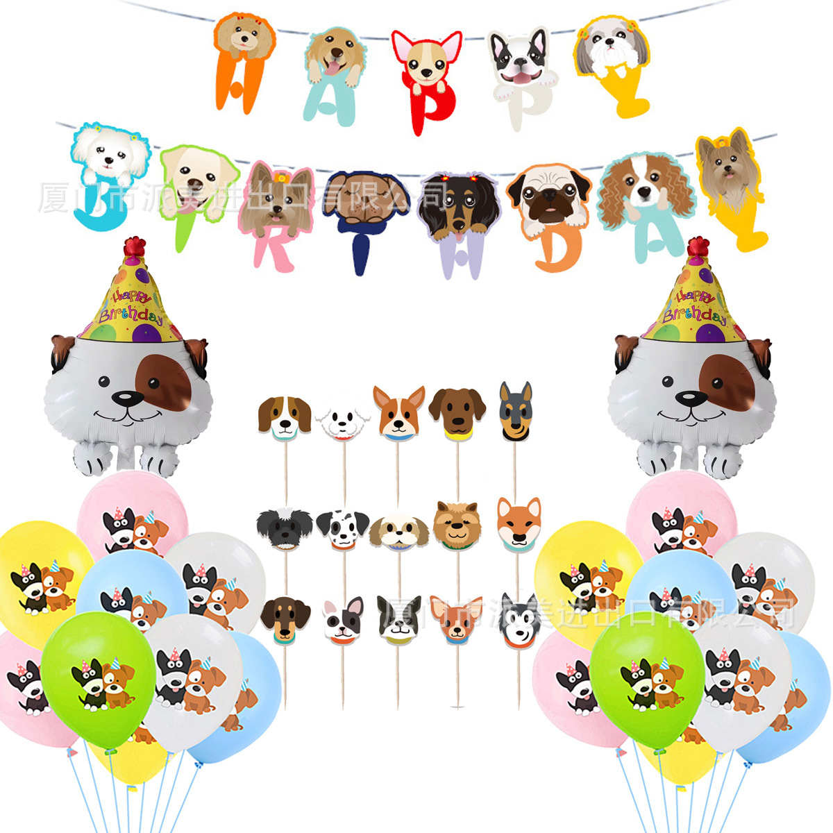 애완 동물 테마 생일 파티 장식 편지 깃발 라텍스 풍선 케이크 깃발 배경 장식 세트스토어 가기