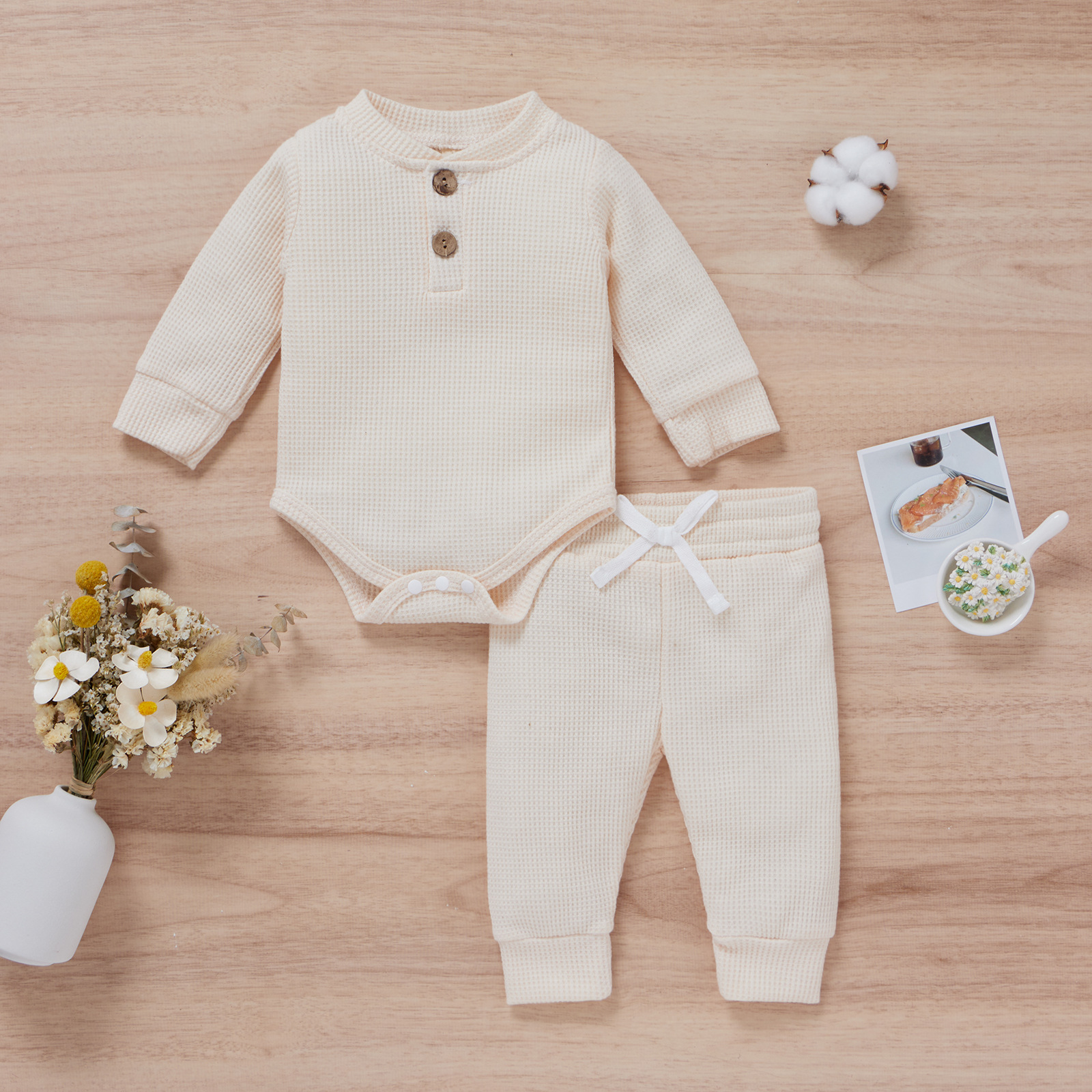 새 남자 세트 가을 면 5 컬러 와플 칼라 긴 소매 방귀 커버 바지 투피스 세트 아동복 수출스토어 가기