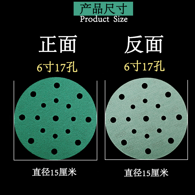 • 박막 그린 샌드 6인치 17홀 P150 100매/박스
