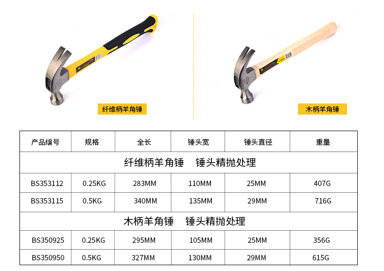 • [업그레이드] 파이버 핸들 클로 해머 0.5kg BS353115