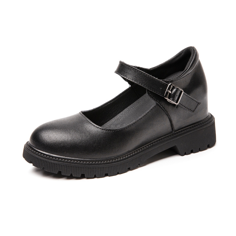 여성을위한 정품 가죽 얕은 입 단일 신발 2024 봄과 가을 새로운 복고풍 프랑스 메리 제인 두꺼운 밑창 여성 신발 내부 높이 증가 작은 가죽 신발스토어 가기