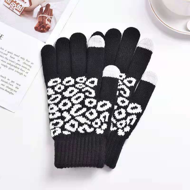 제조업체 겨울 터치 스크린 장갑 니트 자카드 남성 및 여성용 손가락 두꺼운 크로스 보더 야외 따뜻한 사이클링 스키 장갑스토어 가기