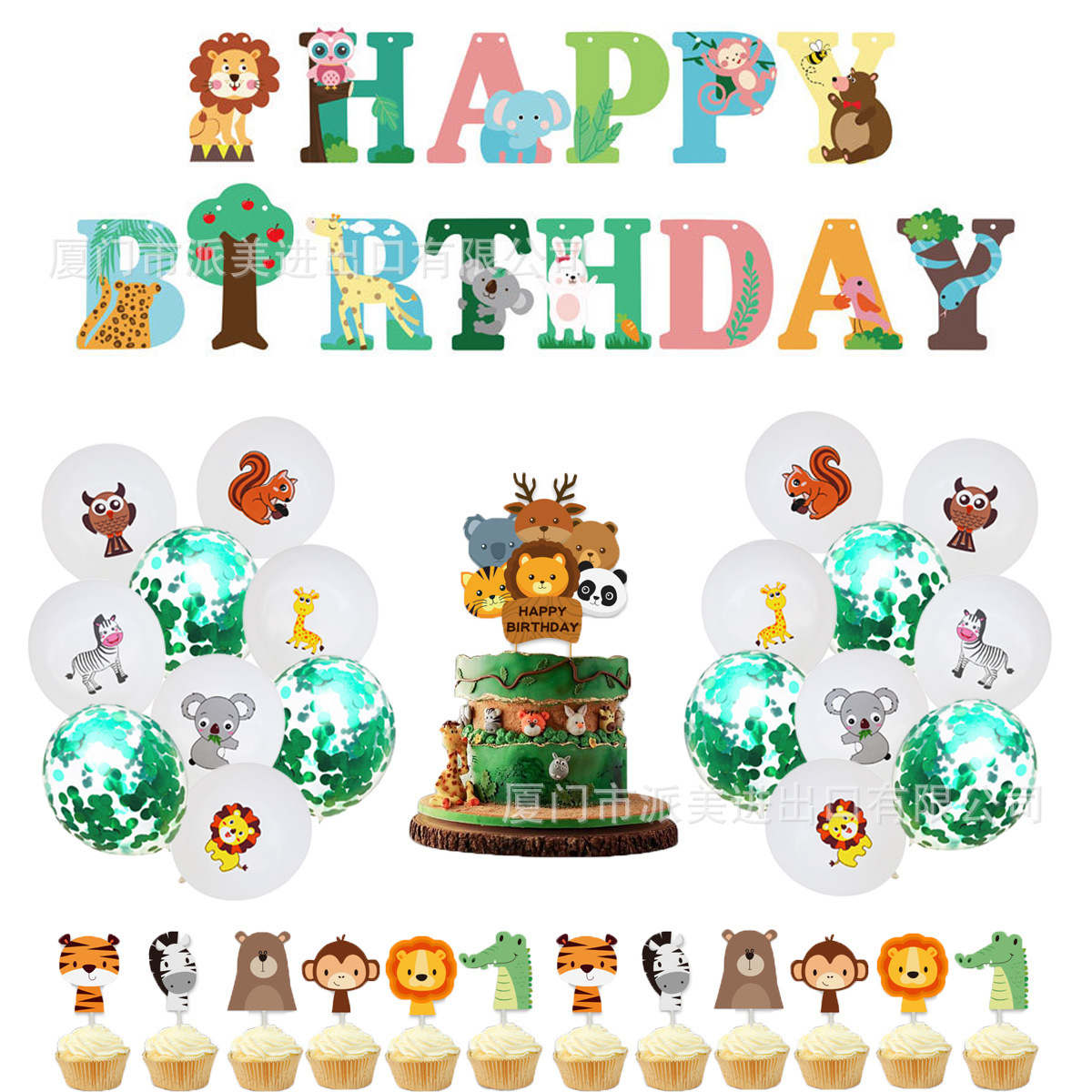 동물 테마 생일 파티 장식 용품 생일 깃발 케이크 깃발 사자 라텍스 풍선 조합 세트스토어 가기