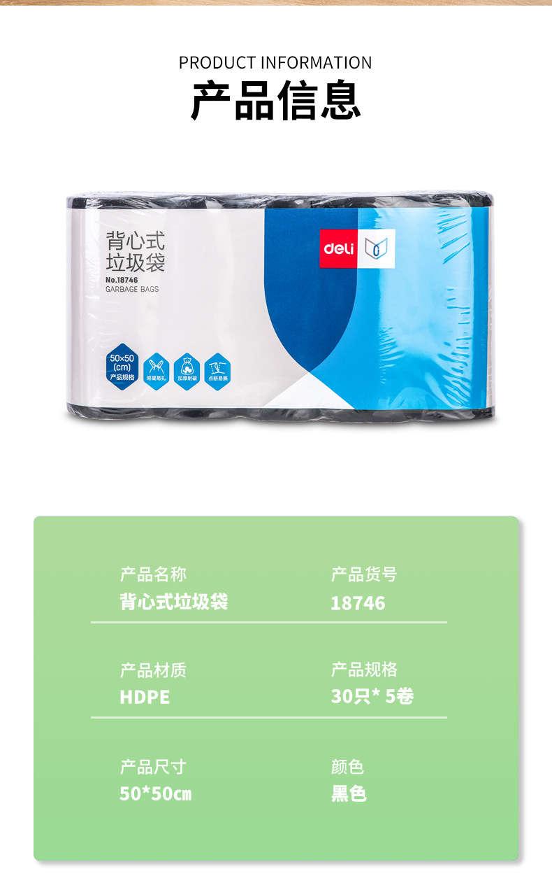 델리 33067 쓰레기 봉투 5 롤 두꺼운 포인트 브레이크 가정용 쓰레기통 청소 가방 사무용품 쓰레기통스토어 가기
