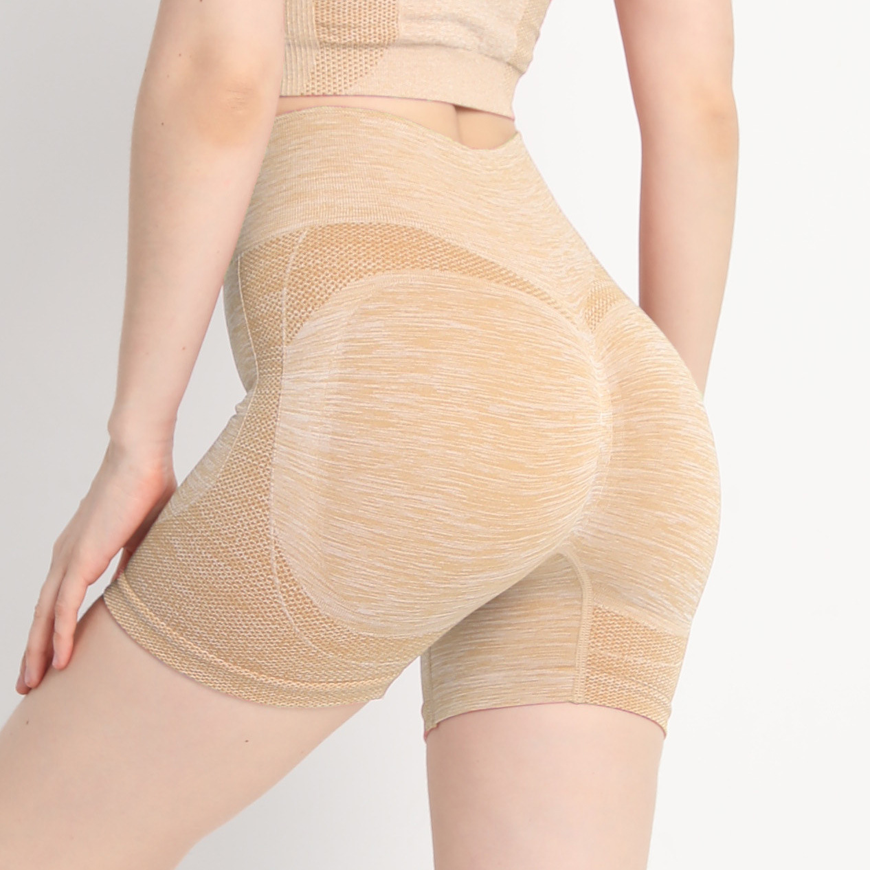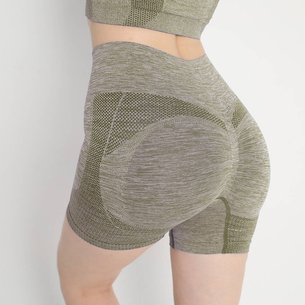 원활한 복숭아 엉덩이 피트니스 요가 바지 여성용 하이 웨이스트 엉덩이 리프팅 배꼽 꽉 스포츠 속건베이스 3 점 반바지