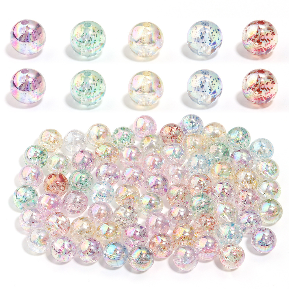 100 개/팩 아크릴 양파 파우더 반짝 투명 컬러 직선 구멍 라운드 비즈 DIY 팔찌 가방 체인 보석 도매스토어 가기