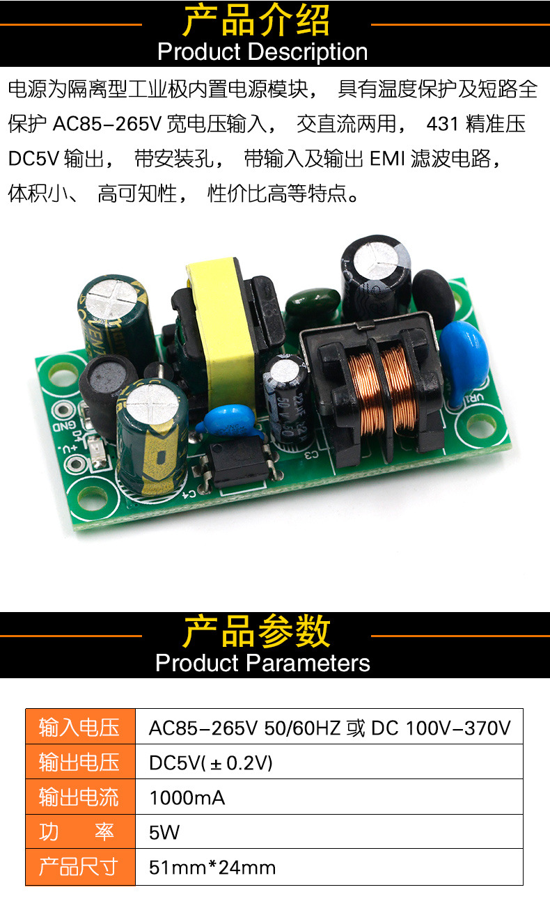 작은 볼륨 5V1A 스위치 전원 공급 장치 보드 모듈 5W 내장 LED 베어 보드 계기 절연 스위치 전원 공급 장치 5V스토어 가기