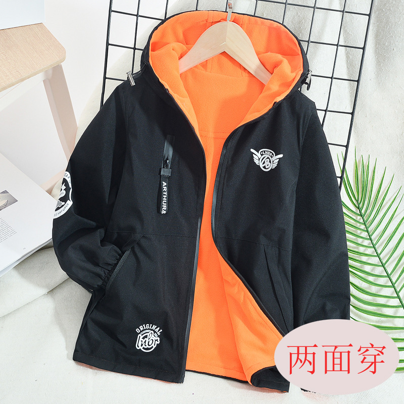 남자들의 봄 가을 겨울 코트 2024 신식 한국식 어린이 기모 양면 재킷 트렌디