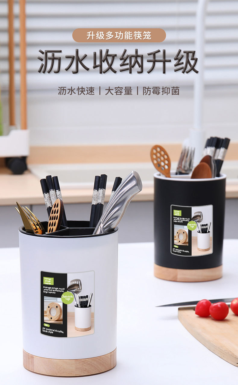 크로스 보더 북유럽 이동식 건조 젓가락 케이지 주방 오크 바닥 다기능 식기 보관 배럴 보관 랙 젓가락 배럴