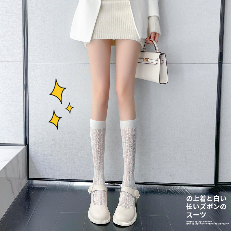 JK 스타킹 화이트 레이스 종아리 스타킹 여성 로리타 로리타 무릎 길이 스타킹 중간 길이 스타킹