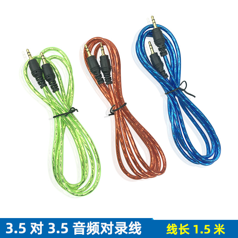 공장 직접 1.5m 투명 컬러 오디오 라인 메탈 헤드 3.5mm 남성 ~ 남성 AUX 자동차 오디오 라인